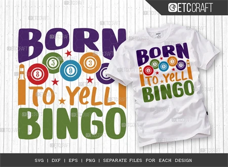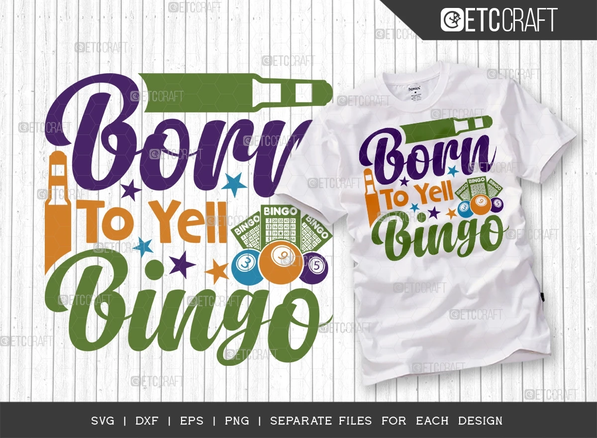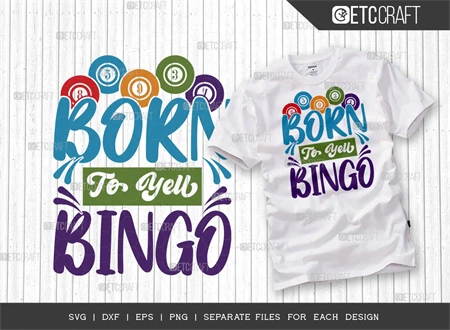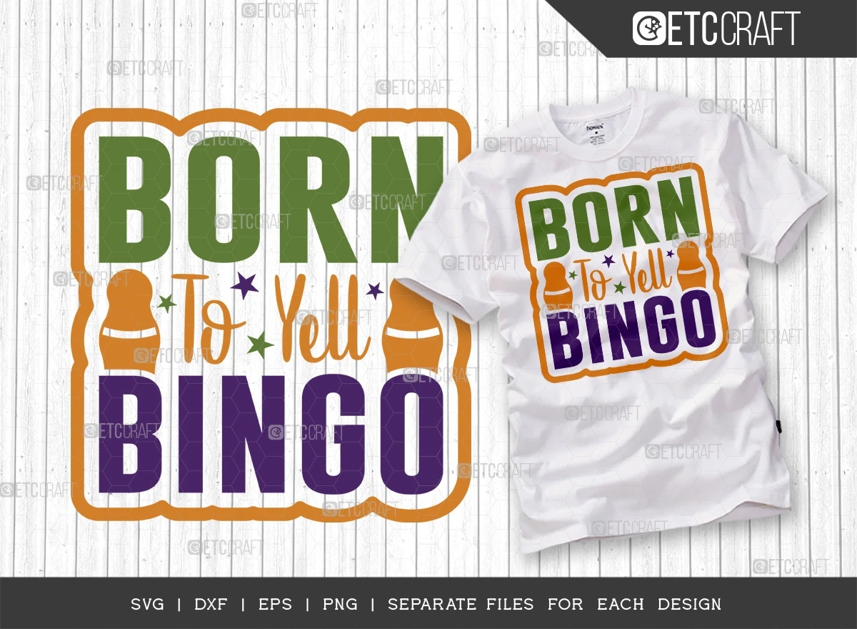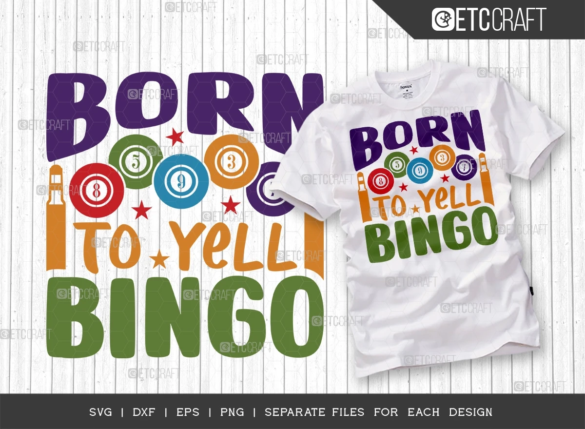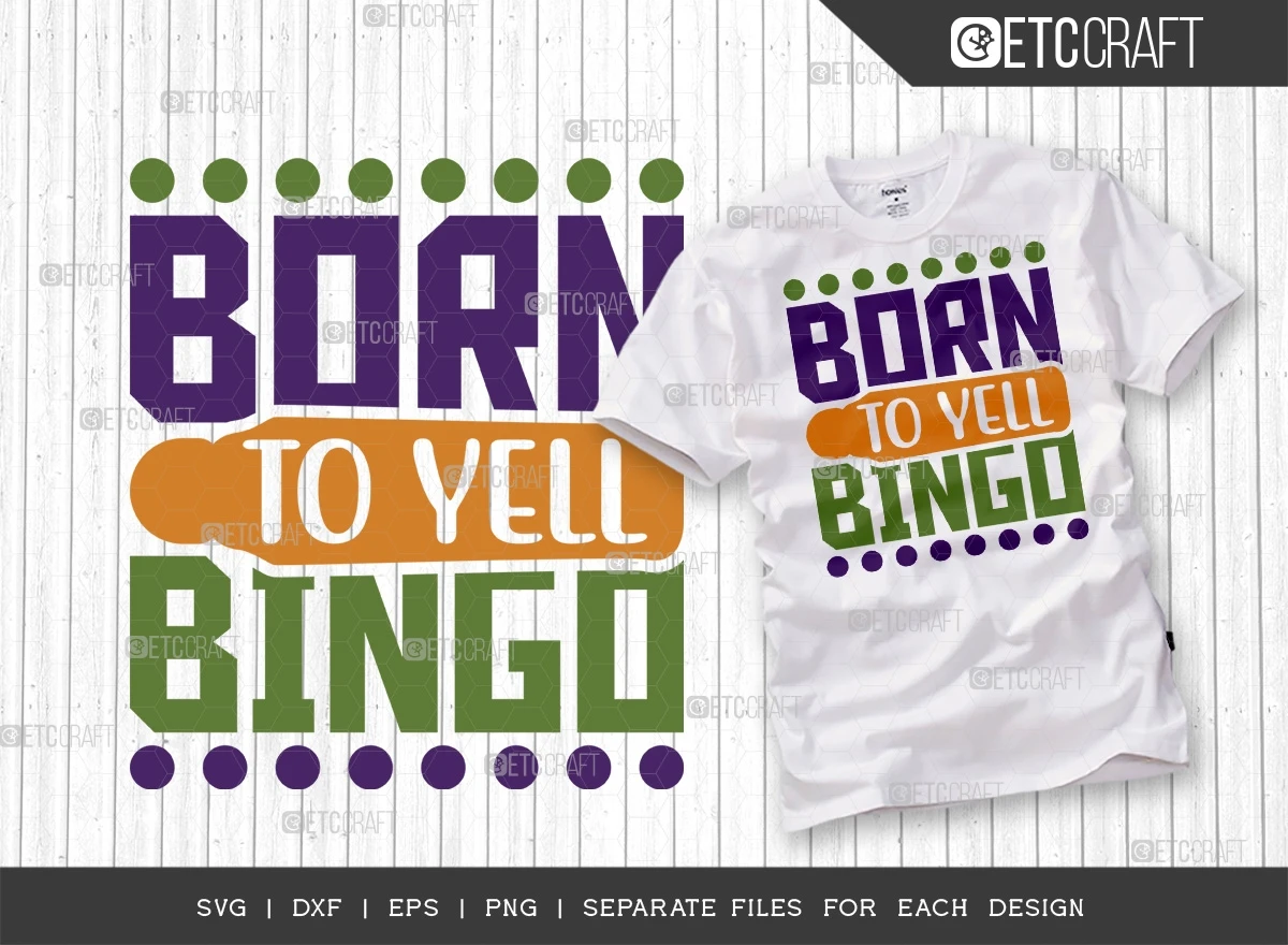 The Born To Yell Bingo SVG Bundle an exciting t-shirt design that combines fun and style for all bingo enthusiasts.