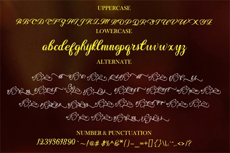 Bosterina is coded with PUA Unicode, which allows full access to all additional characters without having to design any special software. Mac users can use Font Book, and Windows users can use Character Map to view and copy any additional characters for pasting into your favorite text editor / application.