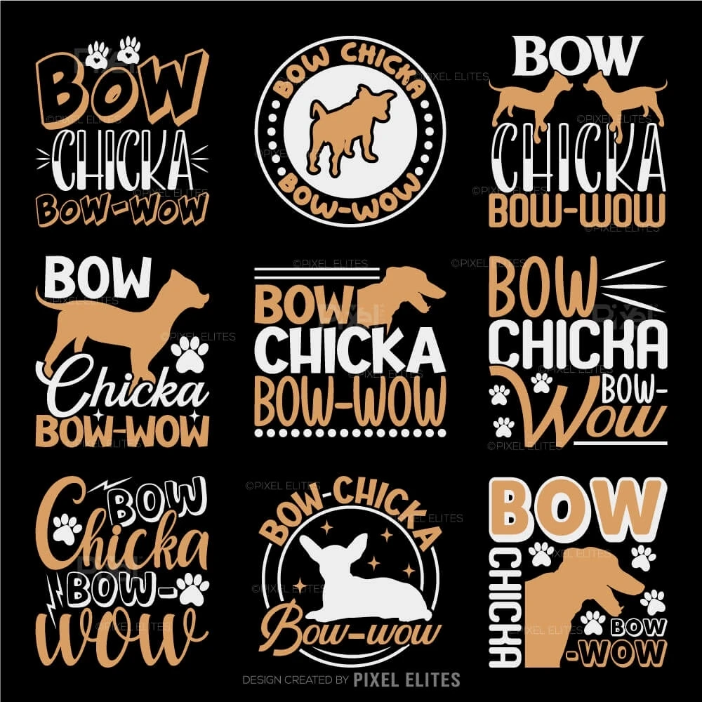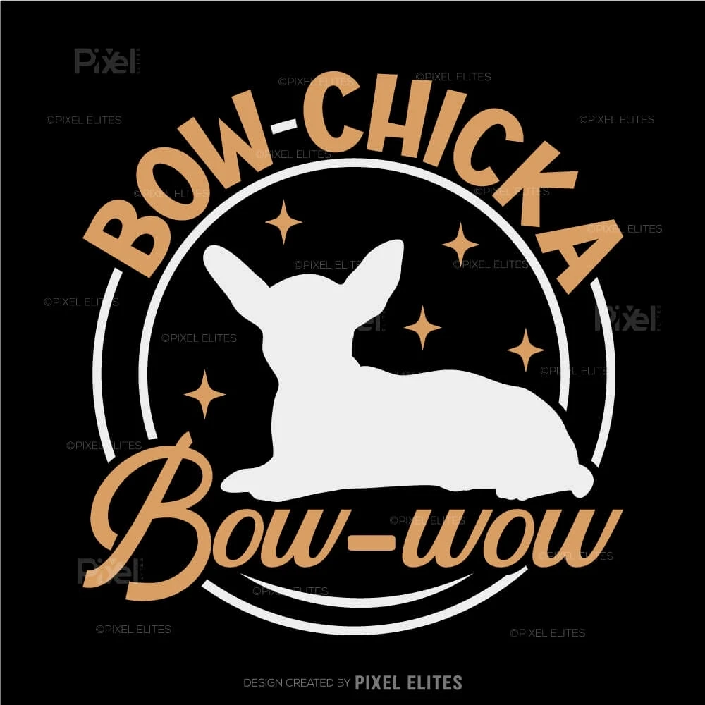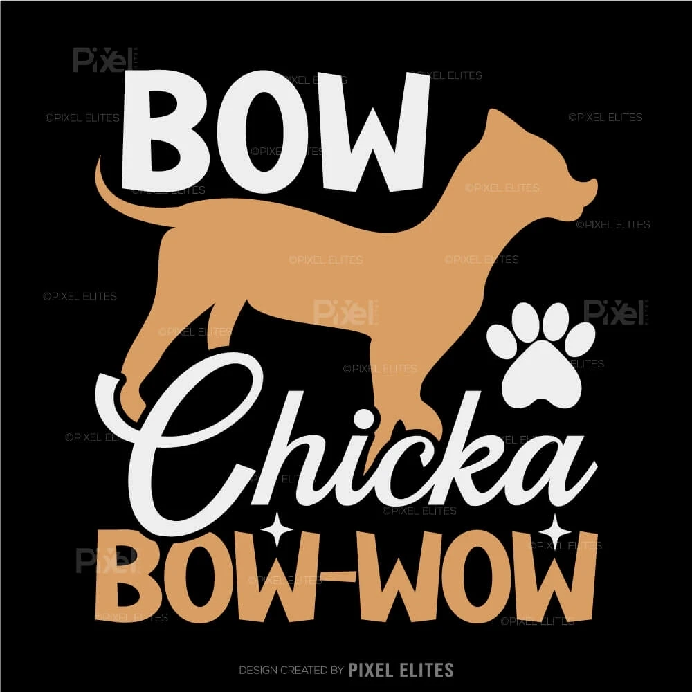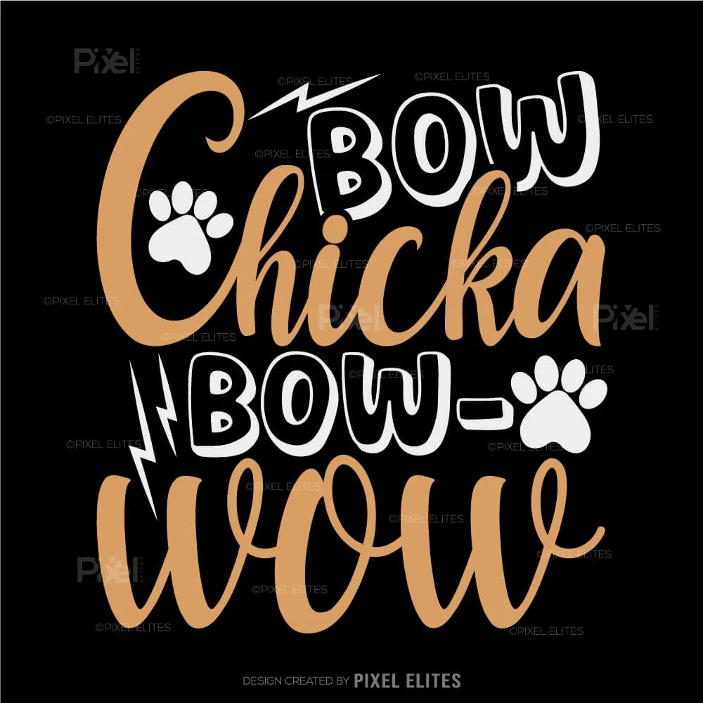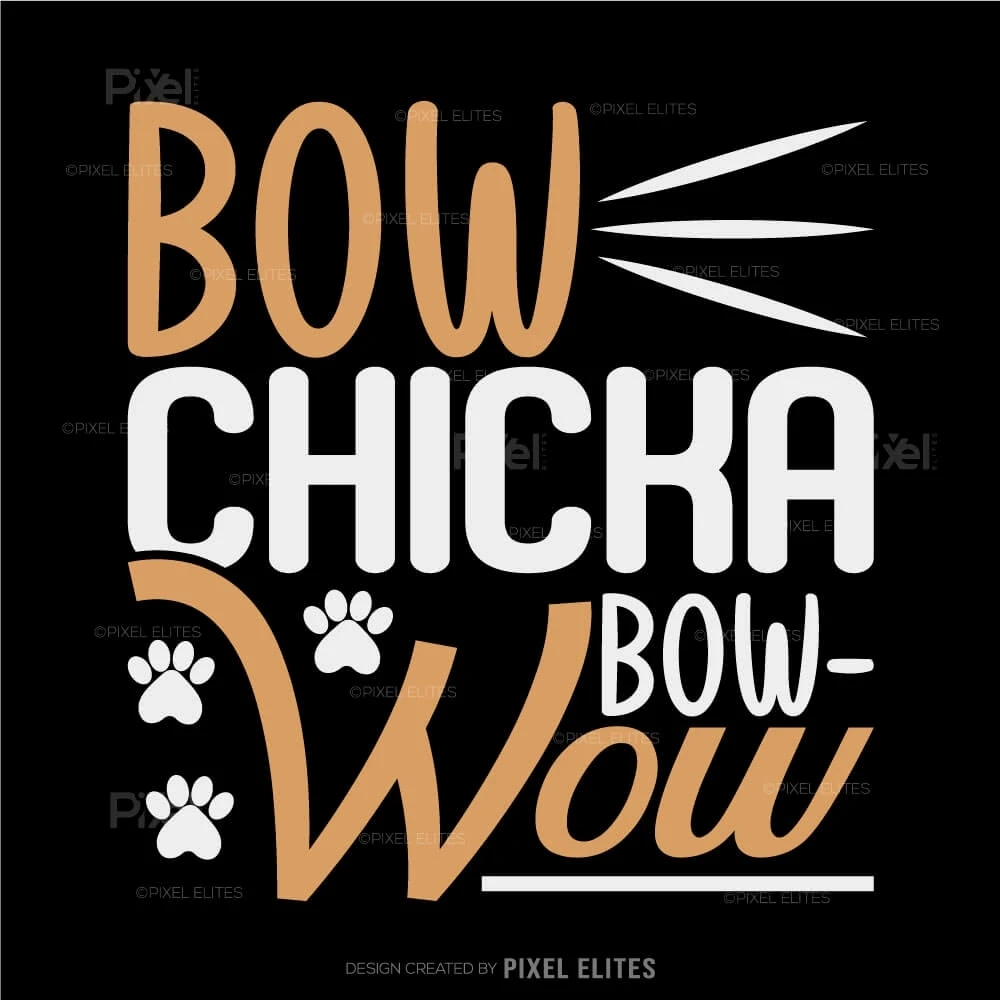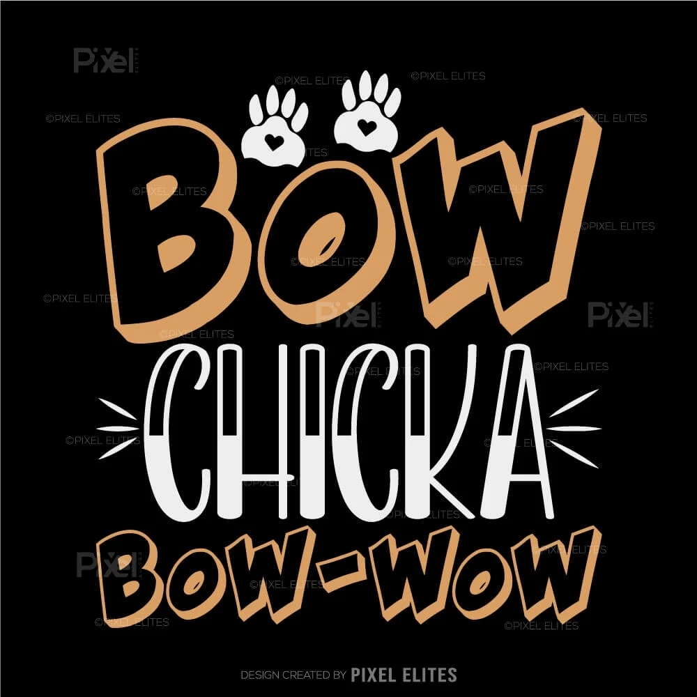 Product Description: Bow Chicka Bow Wow SVG Cut Files T-Shirt Design, Dog Mom, Puppy Lover, Pet Gift, Vinyl Decal, Cricut Cut File, DXF EPS PNG