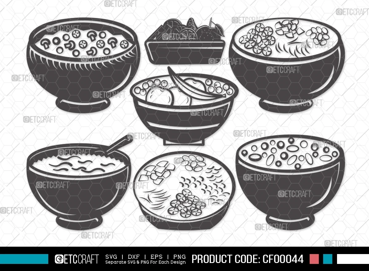 Experience the heartwarming allure of a comforting bowl of corn soup with our Bowl Healthy Silhouette Spoon of Corn Soup SVG Cut File Bundle. This digital collection encapsulates the essence of comfort food, making it the perfect addition to your culinary-inspired projects.