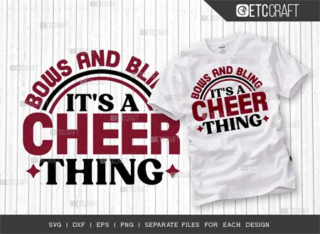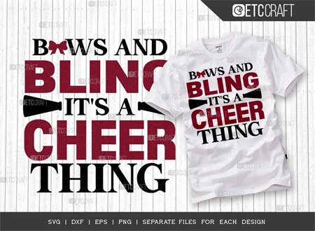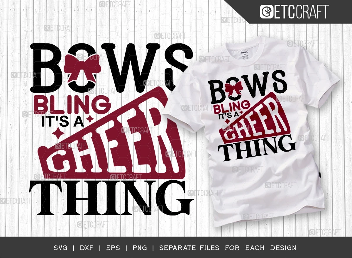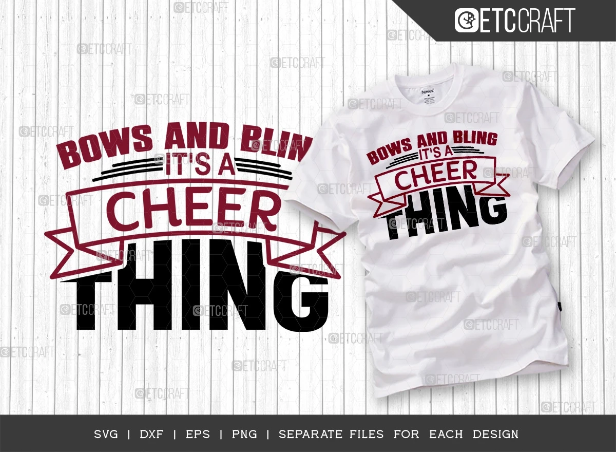 Introducing the "Bows And Bling It's A Cheer Thing" SVG Bundle - a fantastic t-shirt design that will bring a touch of cheer to your wardrobe. With its captivating design and versatile uses, this bundle is a must-have for cheer enthusiasts.