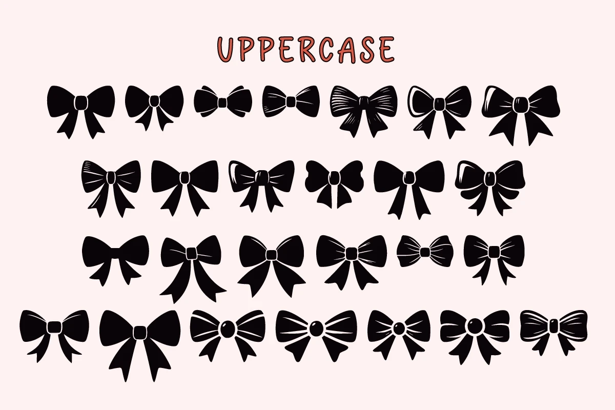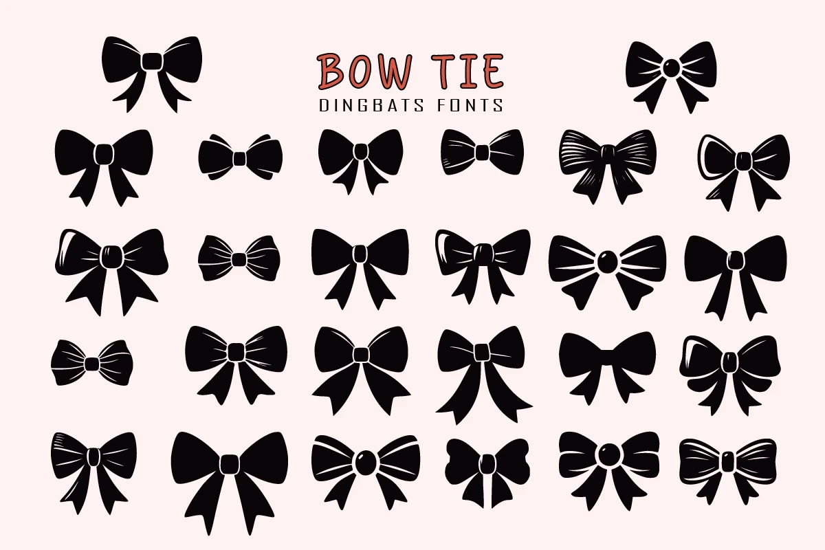 Bow Tie is a decorative dingbat font that is suitable for various crafts in various themes such as Valentines, Christmas, holidays, thanksgiving, and back to school, and fashion can be applied to t-shirts, bags, tote bags, cups, pillows, greeting cards, and many more.