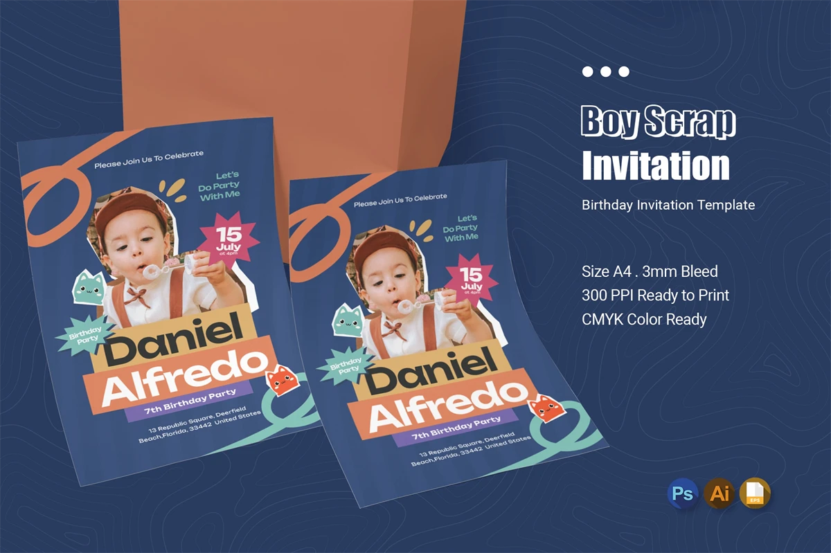 Of course you want to invite friends to your birthday party with the best invitations! Impress the invited guests with your style of invitation, by using this invitation card template. You can easily edit & customize each of the designs because every component is well organized and editable.