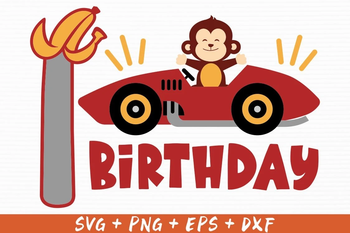 Boys Car Birthday Shirt Monkey Car Birthday Svg 1st Birthday