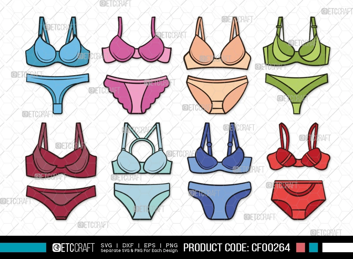 Introducing our Bra and Panty Clipart Women's Sexy Lingerie Bikini Underwear SVG Cut File Bundle a sensuous collection of high-quality clipart and SVG files designed to add a touch of elegance and allure to your creative projects. This bundle includes a range of lingerie-themed illustrations, perfect for creating stylish and personal designs.