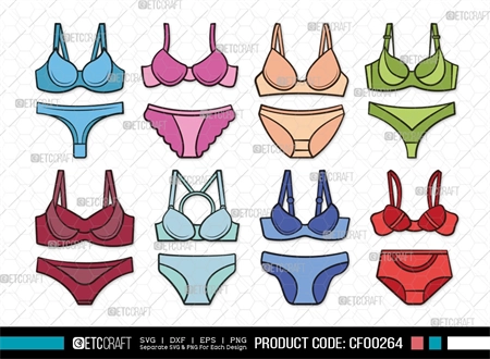 From crafting special surprises for your loved one to creating personalized romantic gifts, our Bra and Panty Clipart Women's Sexy Lingerie Bikini Underwear SVG Cut File Bundle is your go-to resource for adding elegance and allure to your creative endeavors.
