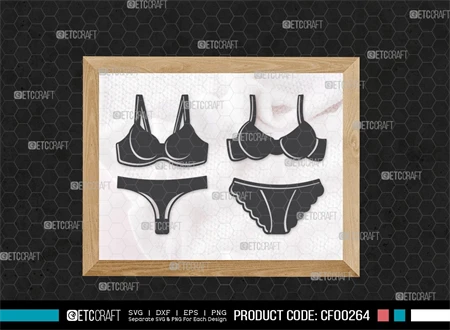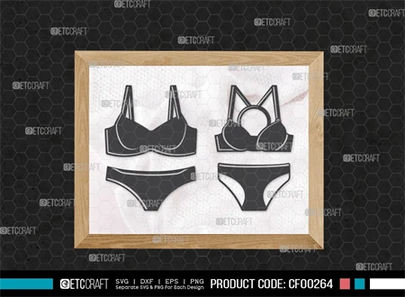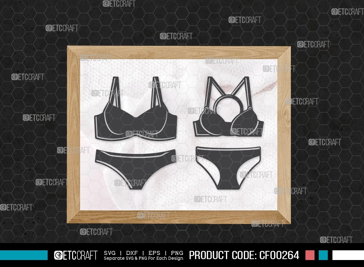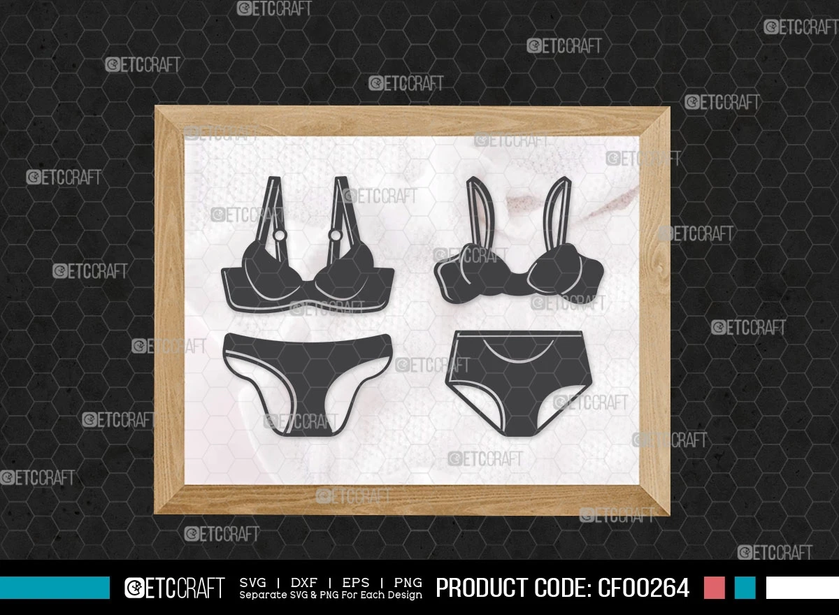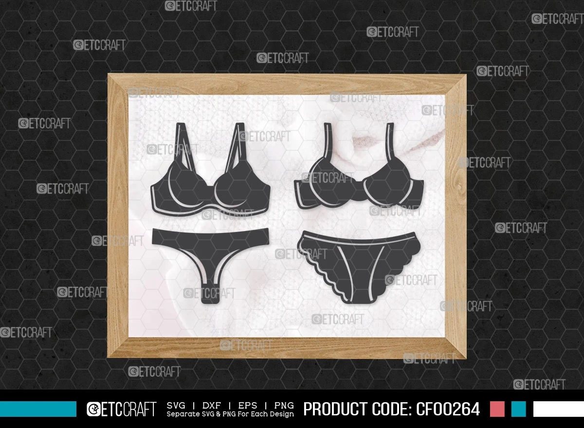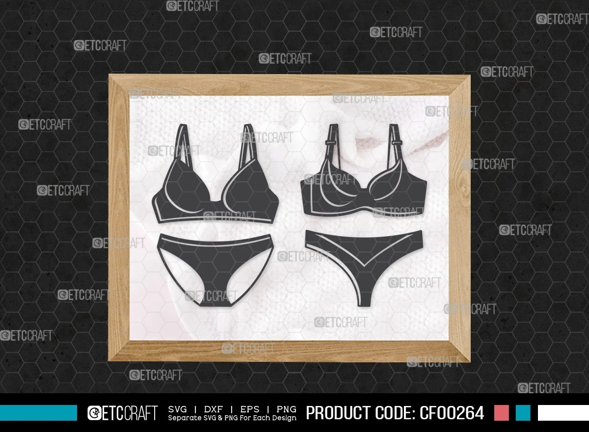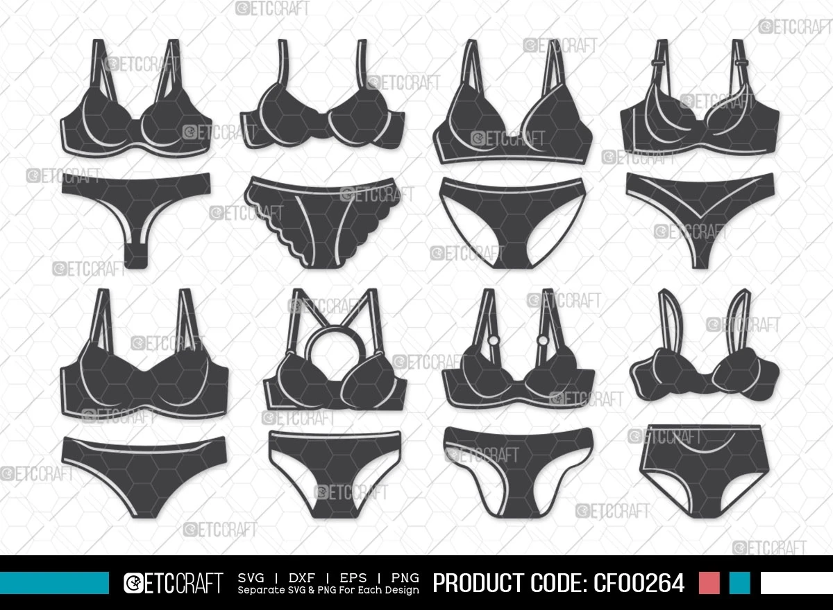 From crafting special surprises for your loved one to creating personalized romantic gifts, our Bra and Panty Silhouette Women's Sexy Lingerie Bikini Underwear SVG Cut File Bundle is your go-to resource for adding sophistication and allure to your creative endeavors.