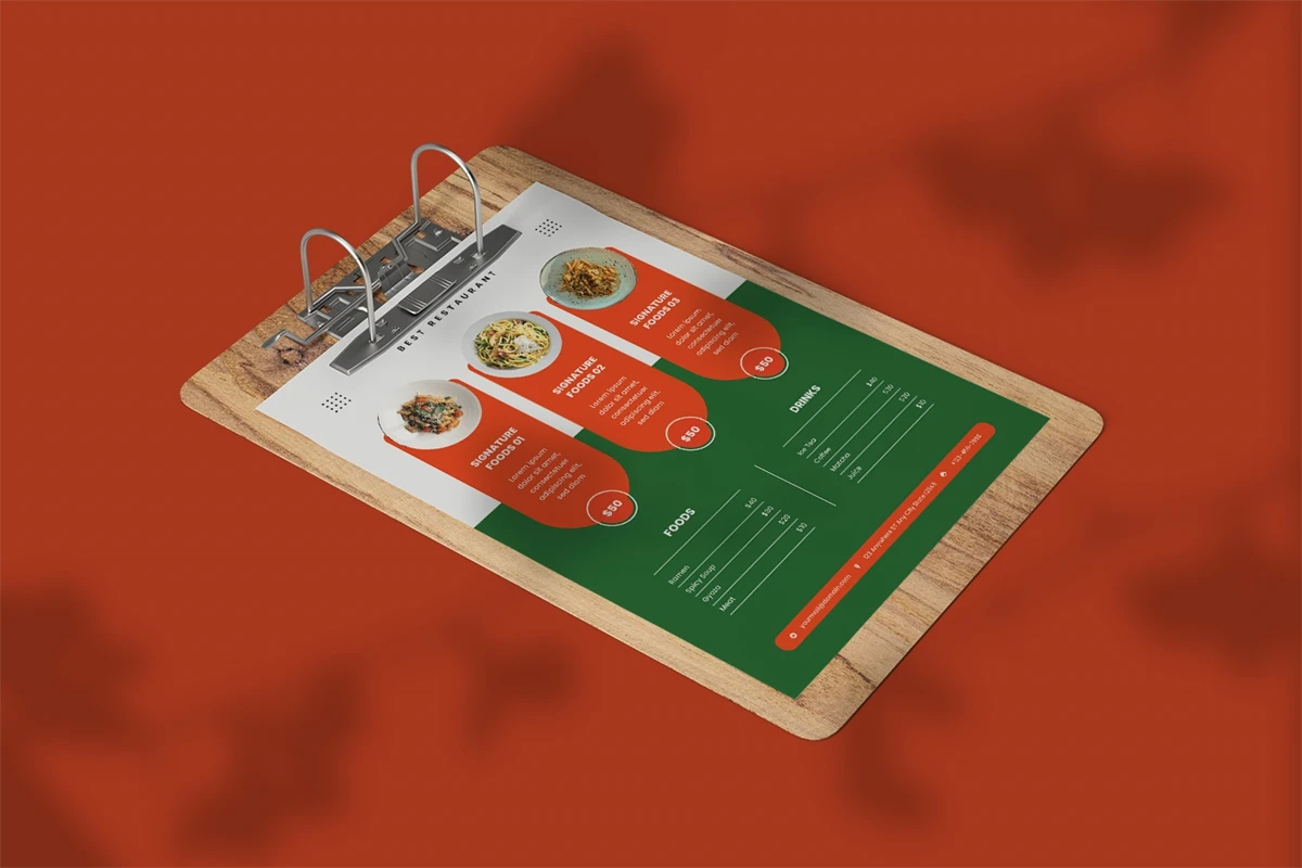 Menu Restaurant Template is a menu template for people who sell, business, or run a food-related business. The layout makes it easy to find the menu you want. Too many choices can make customers feel overwhelmed, so its better to limit the number of choices, colors, and other design elements so that customers can easily scan and order items.