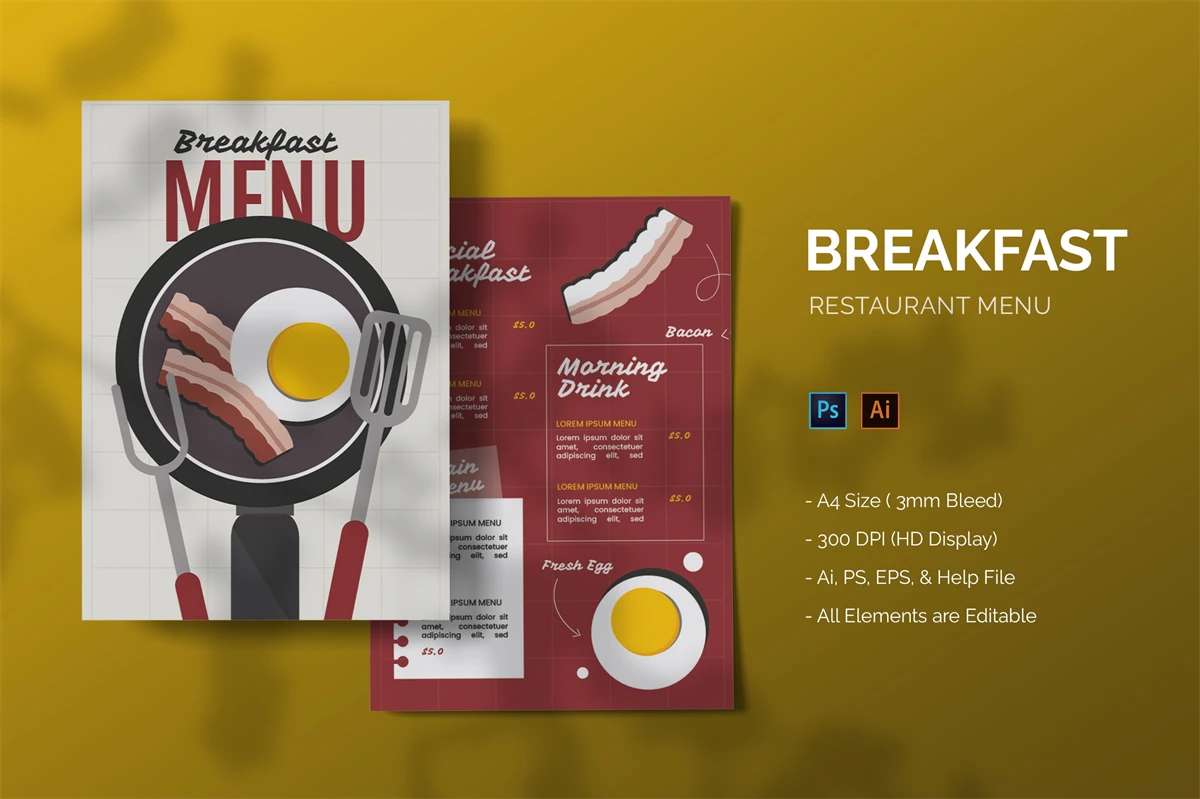 **Breakfast - Food Menu**. This template is excellent for your business and will make your customers interested, elegant, and easily editable according to your needs, this restaurant menu is perfect for, promos, cafes, hotels, and resort shops online. etc. I hope you enjoy this restaurant's menu