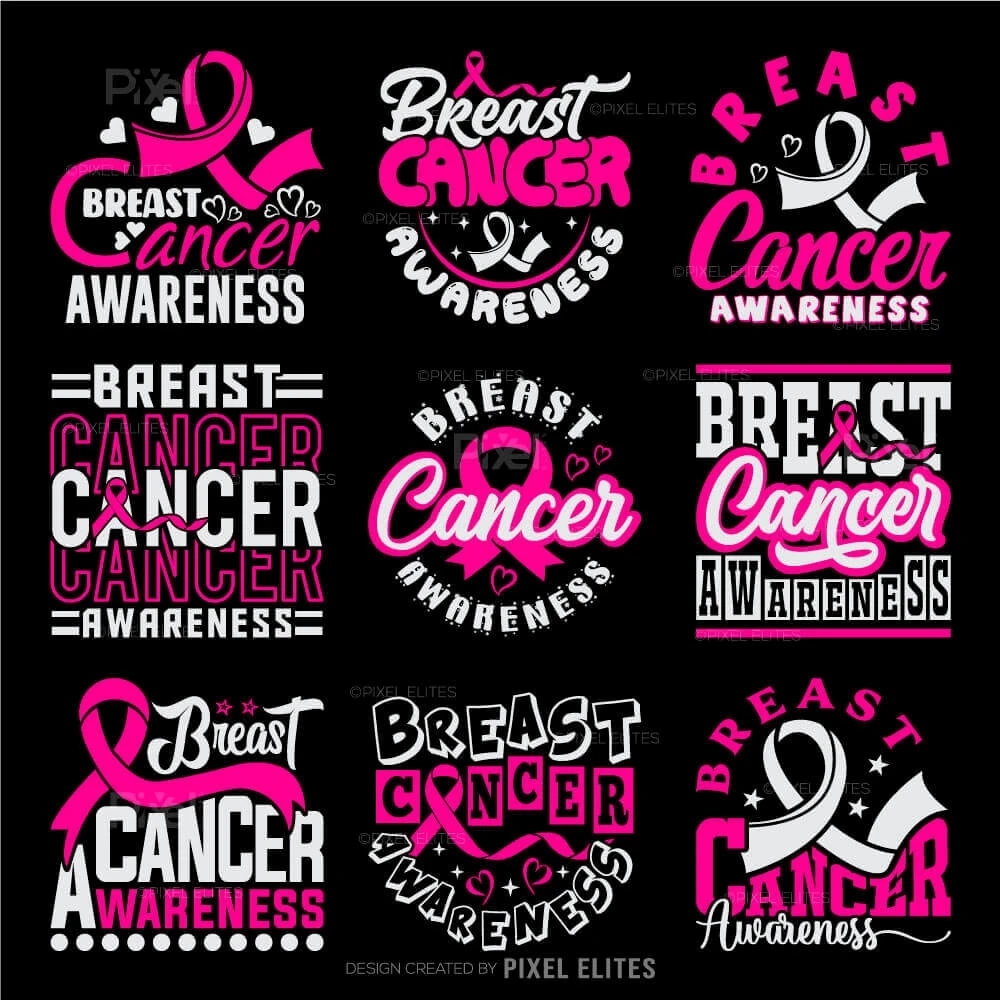Breast Cancer Awareness SVG Cut Files - T-Shirt Design, Pink Ribbon Vinyl Decal, Fight Cancer Together