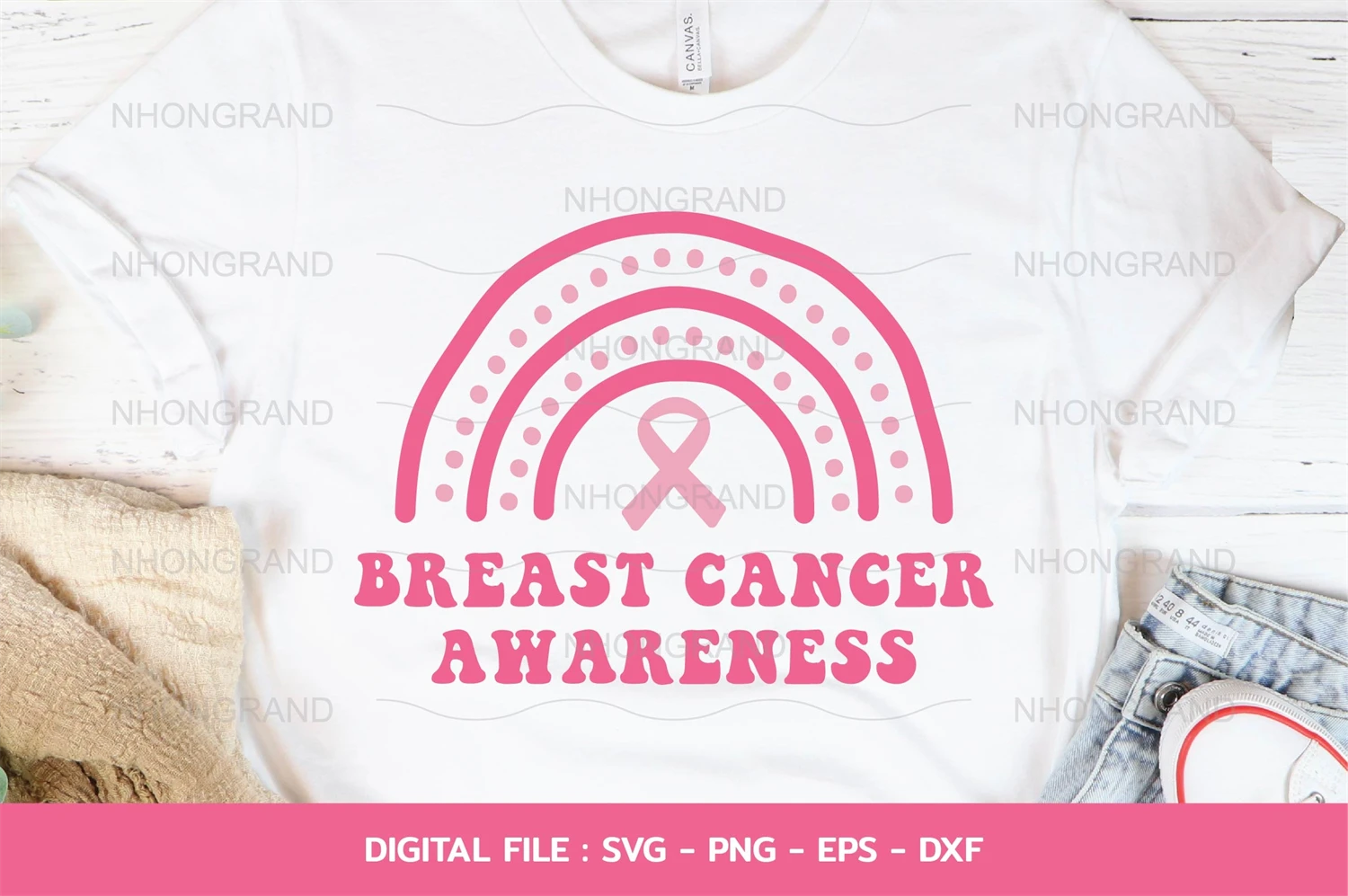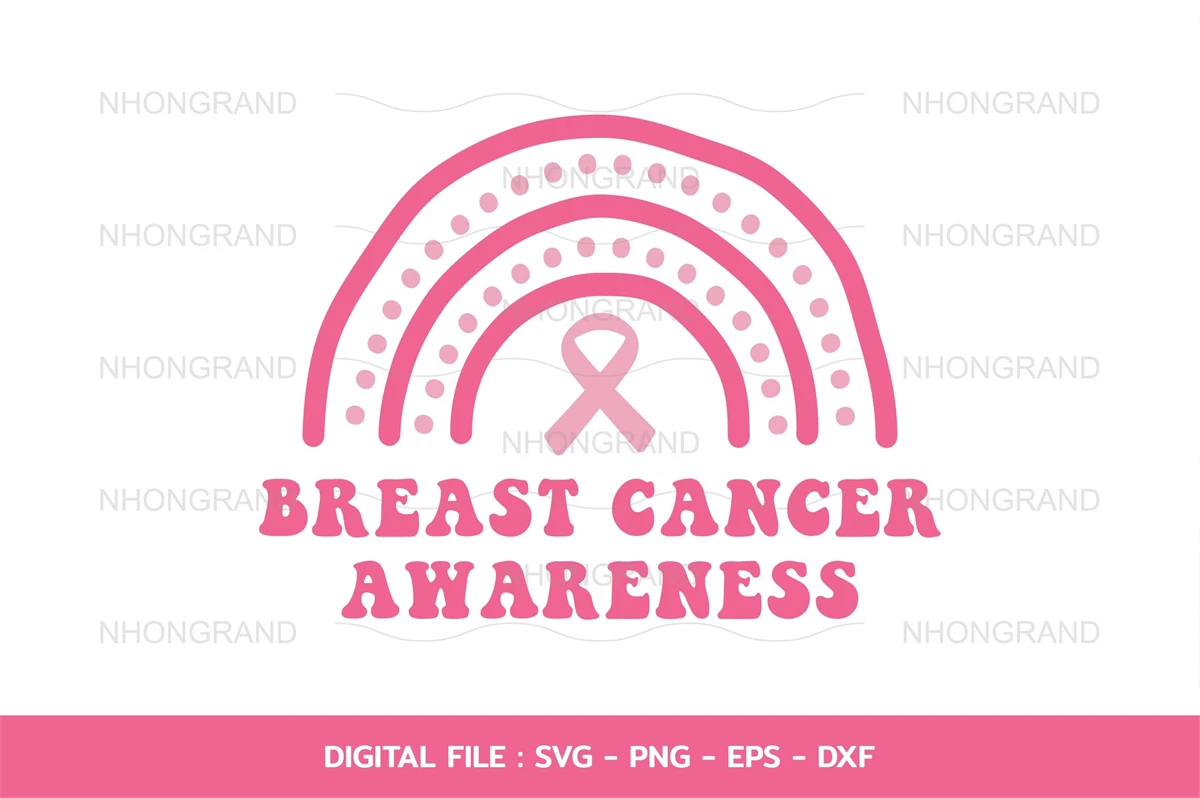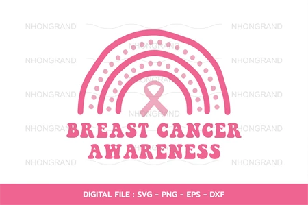 breast cancer awareness with cute rainbow boho pink ribbon gift t-shirt, Cricut Files, svg, png, eps, dxf Instant Download