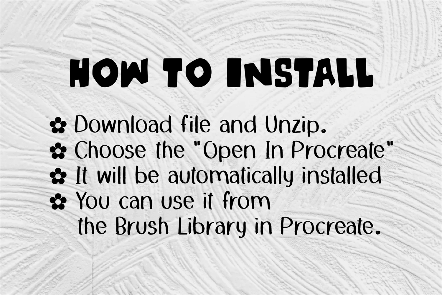 - These brushes will work ONLY in Procreate application.
