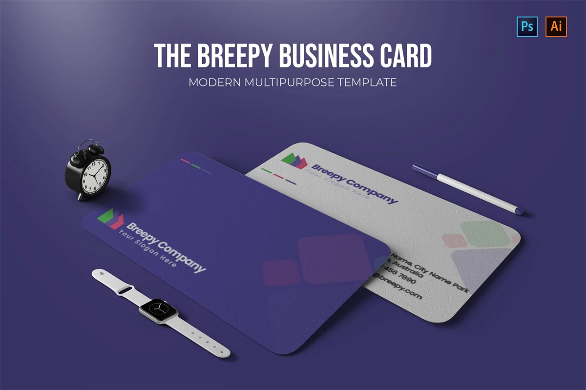 This Breepy Company - Business Card make your business cards look professional. You can use this business card for, identity, company business cards, Corporate Business, Creative, Blogs, Photographers, Artists, Designers, etc.