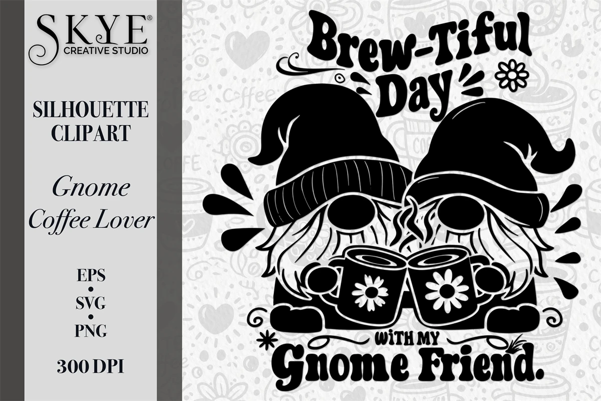 Coffee Gnome for Coffee Lover with Coffee Quotes Silhouette Illustration Clipart.