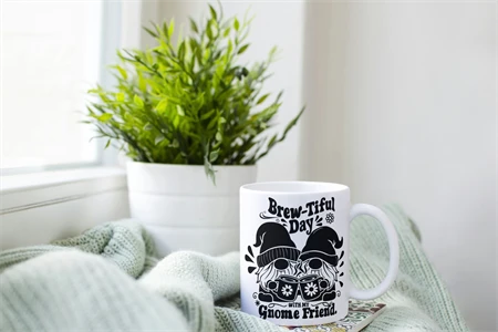 Perfect for coffee lovers, this whimsical design features an adorable gnome enjoying a favorite brew with fun and catchy quote.