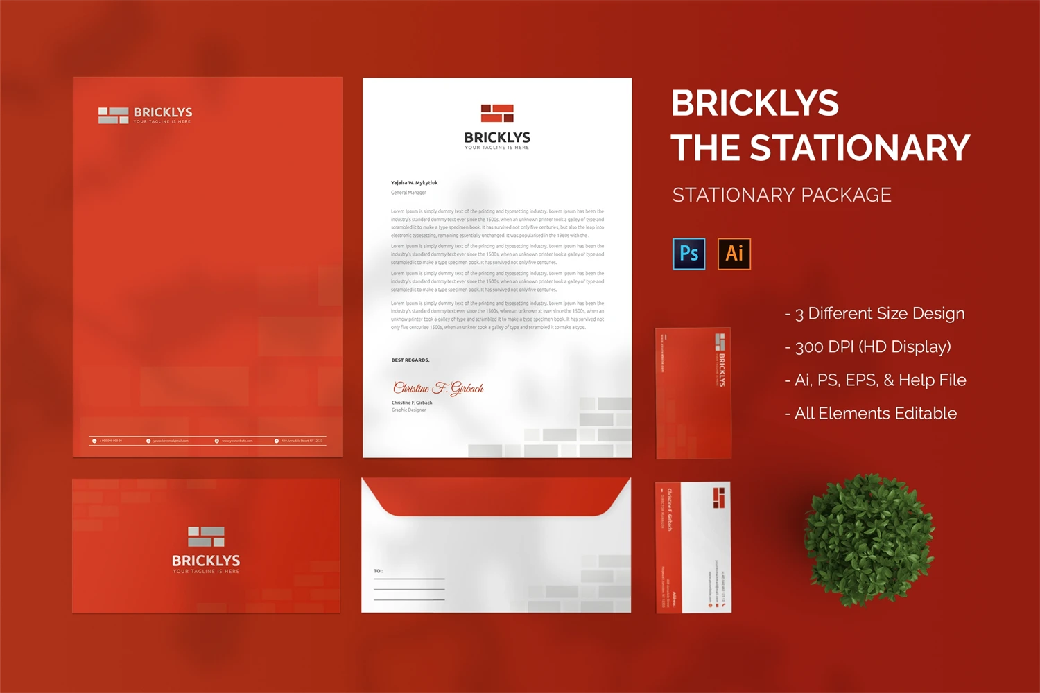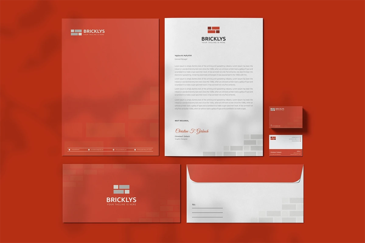 Bricklys - Stationary. This template is great for your business and this design will make your interested, elegant, and easily editable according to your needs. I hope you enjoy for this stationary.