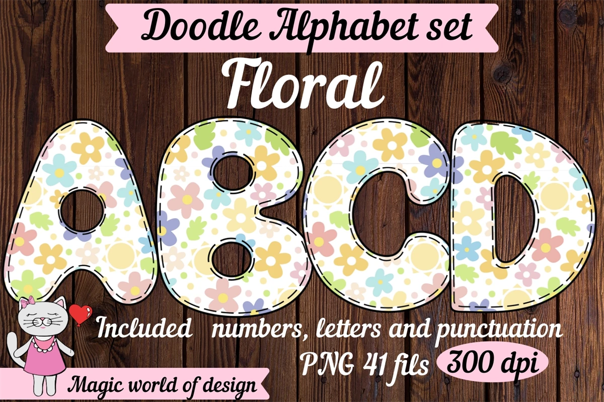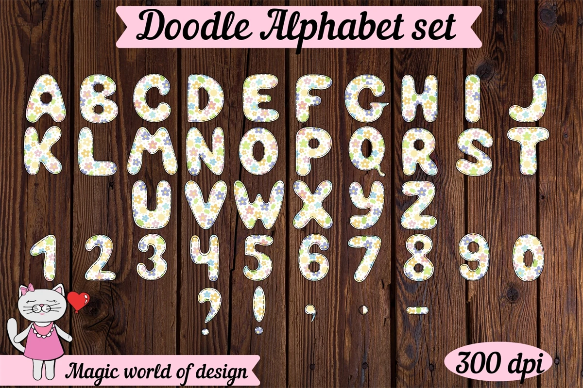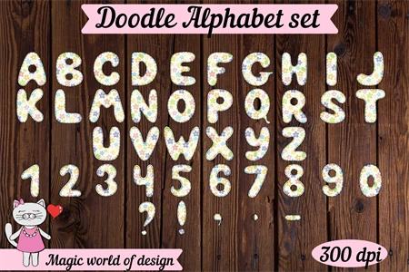 Bright Daisy Flowers Doodle Alphabet png, sublimation design