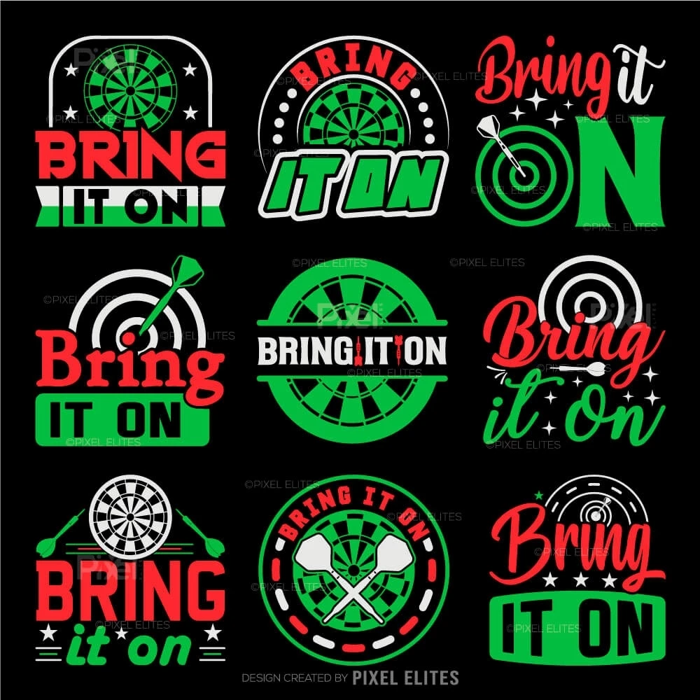 Product Description: Bring It On SVG Dartboard Bundle Darts Game Darts Quote Design
