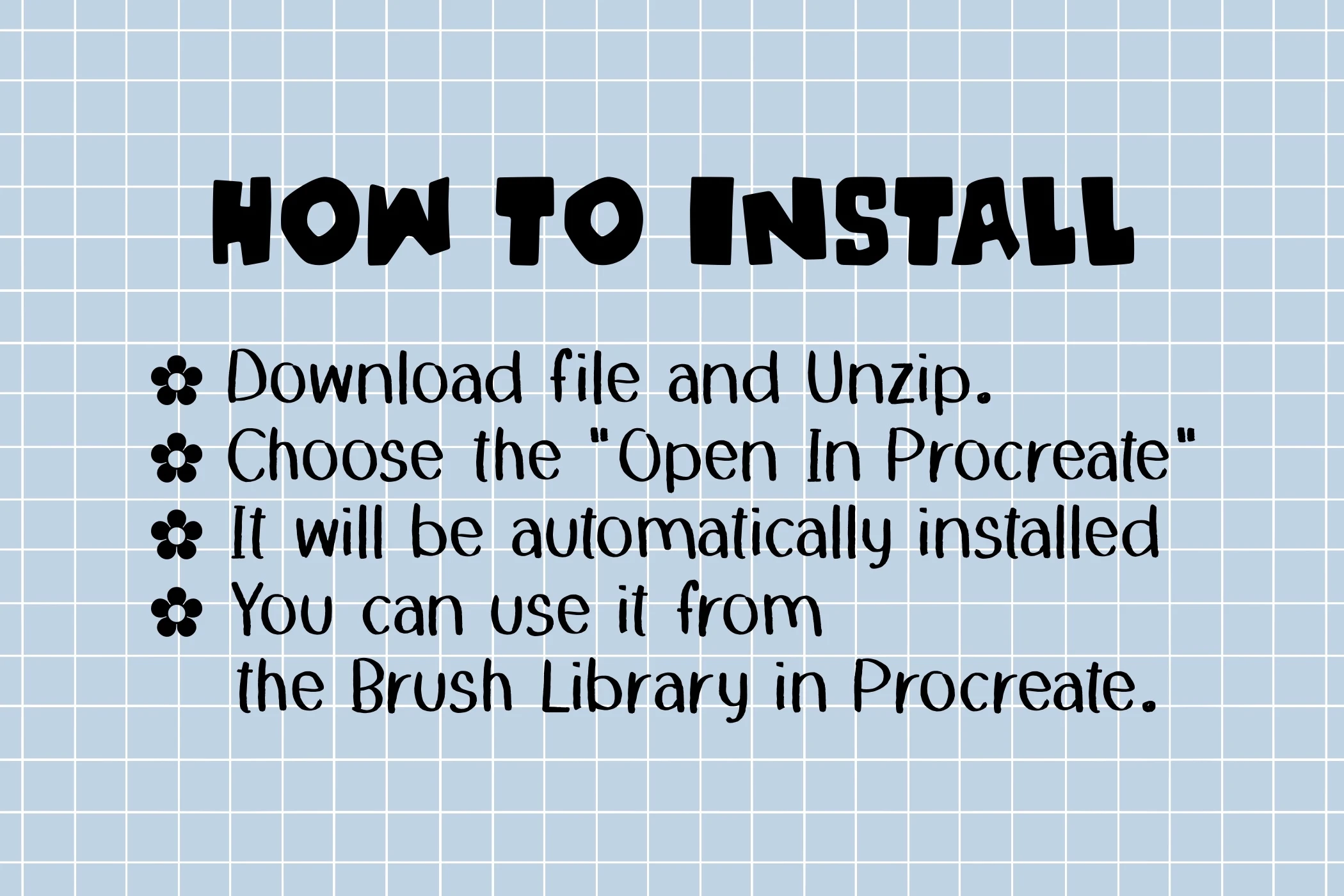 - These brushes will work ONLY in Procreate application.