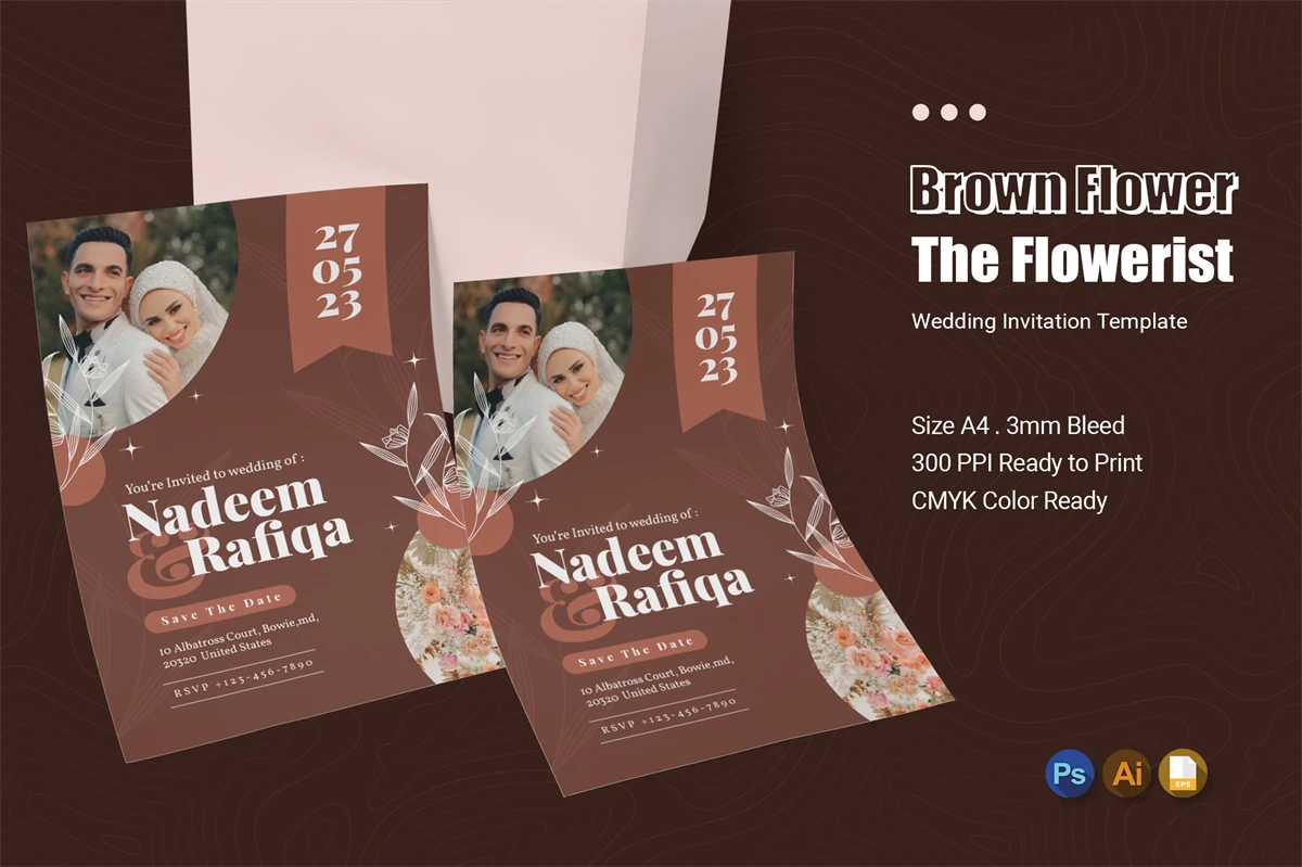 Celebrate your beautiful day with this beautiful wedding invitation template. Our wedding invitation templates will make your guests feel amazed and spread happy vibes. This template is obviously easy to use and customize.