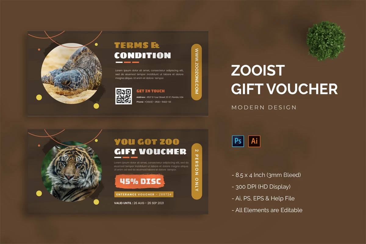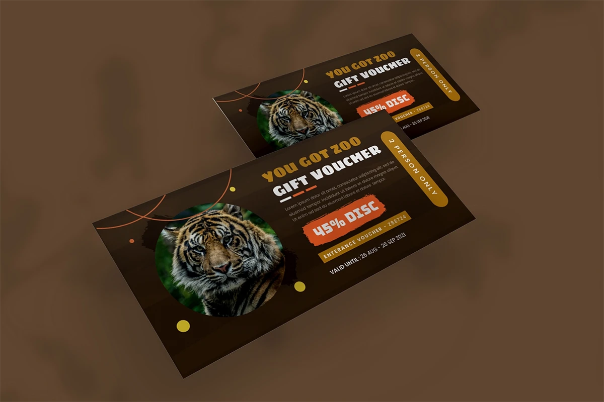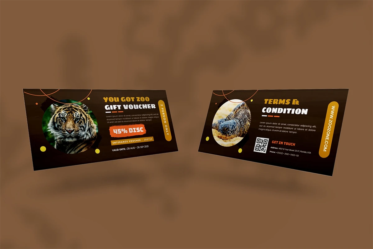 This is a ** Brown Zooist - Gift Voucher ** Get it now and don't miss it!, a Gift Voucher for all your business and personal needs. Great for your business and this design will keep you interested, elegant, and easy to edit according to your needs (** Adobe Illustrator, Adobe Photoshop **). You can use this Gift Voucher for your business, event or other publishing like marketing promotions and company profile, and you can also use this gift voucher to your clients and family, I hope you enjoy this, Hope you like it don't forget to rate, Thanks.
