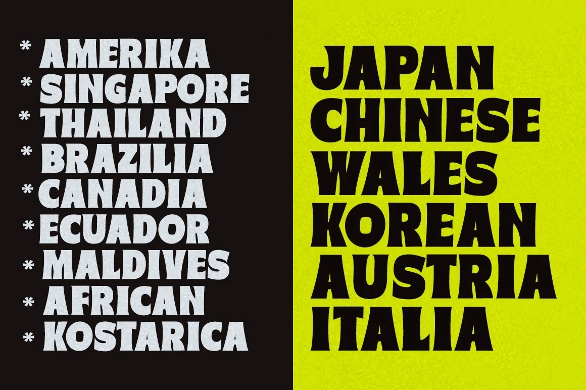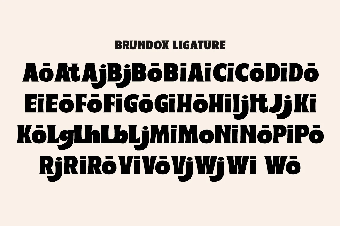 Brundox super bold font Inspired by vintage style, but made a little more modern. In combination with a solid and clean regular san serif type, you can explore the designs you need for your typographic projects. This font pack is perfect for magazines, titles, invitations, movies, product designs, brands, and other design projects.