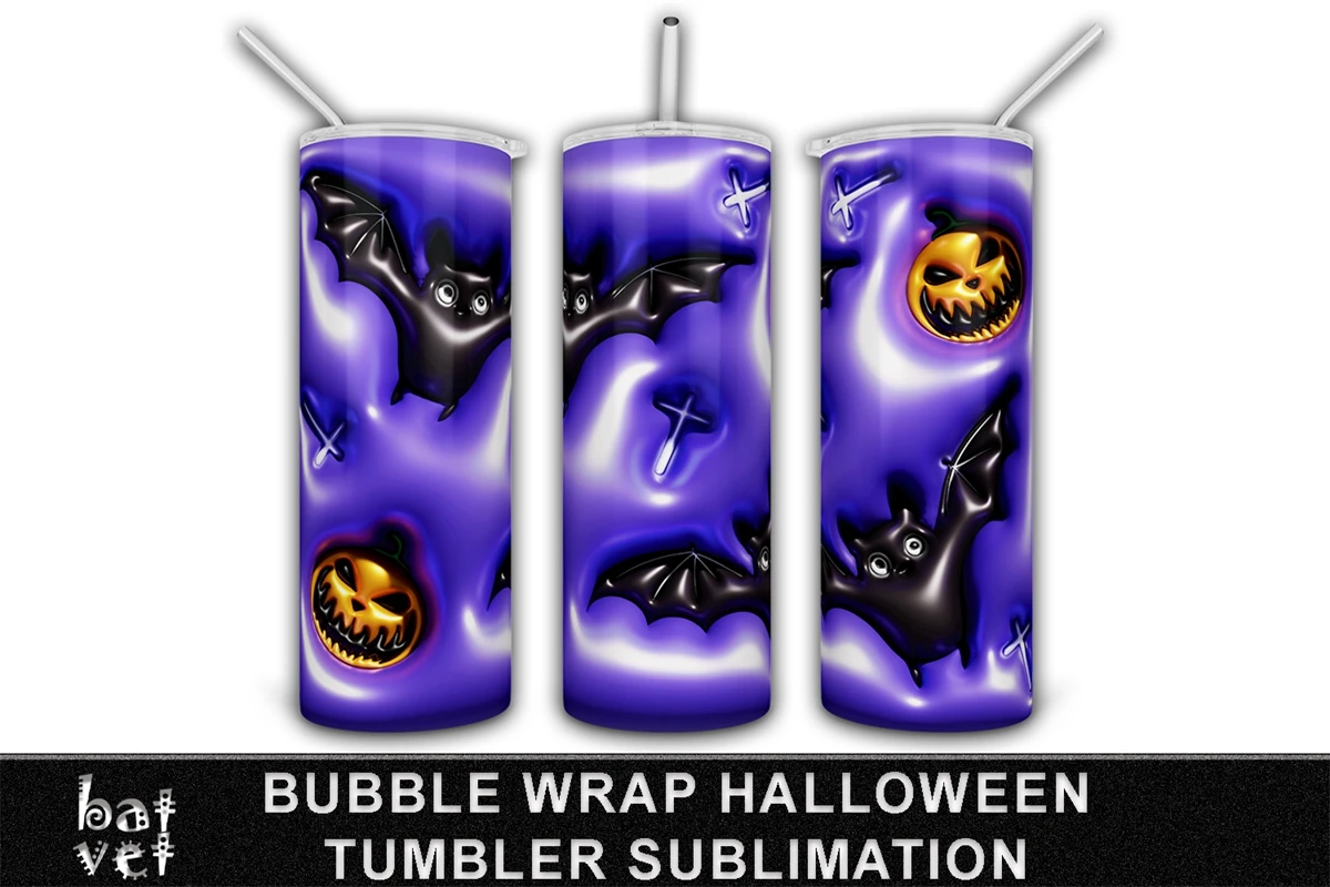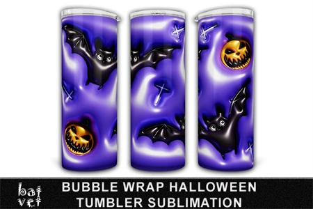 Bubble Wrap Halloween Tumbler Sublimation / 3D Inflated Bat Tumbler PNG