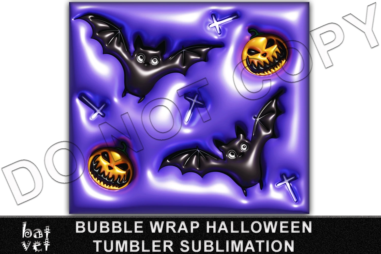 20 Oz Tumbler Wrap Puffy Halloween Bats, Pumpkins, Crosses Inflated 3D Design Sublimation.