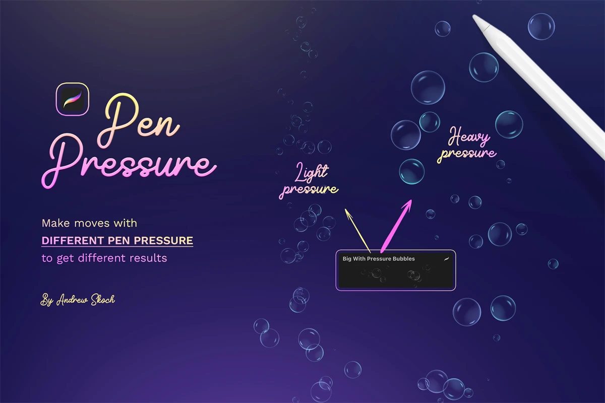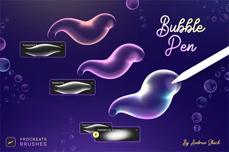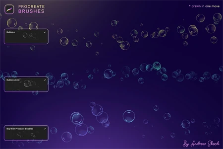 It's so easy to draw bubbles with these magic brushes! Create bubble backgrounds with pen pressure bubbles, draw shapes and letters with bubble pen! Add colorful highlights with special brush.
