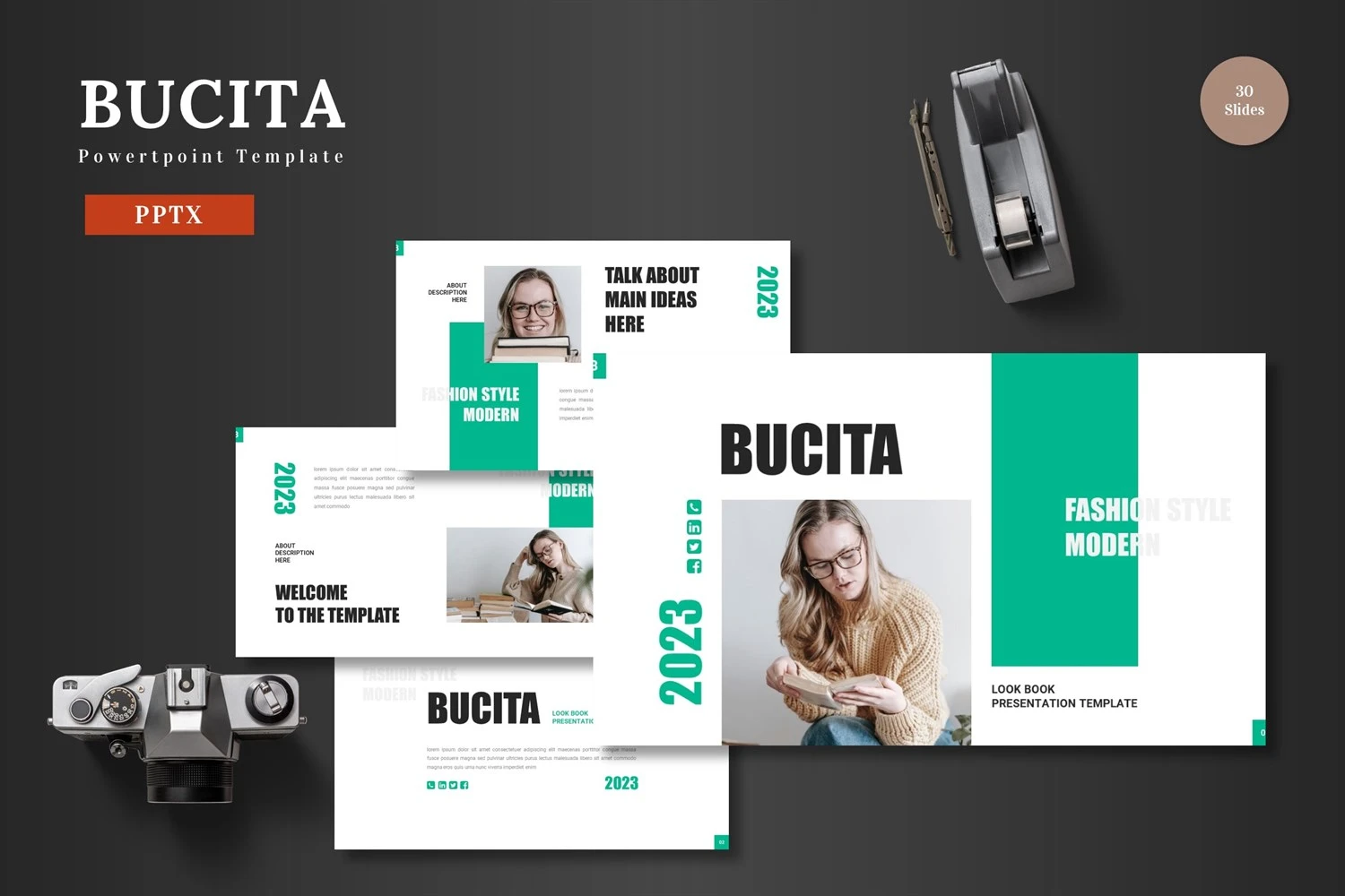 This is **Bucita - Powerpoint Template** - Get it now! Powerpoint Slides is a great template ready to use. Clean, scalable, colorful, and multipurpose. Suitable for Business, Pitch Deck, E-commerce, or Product promotion purposes.