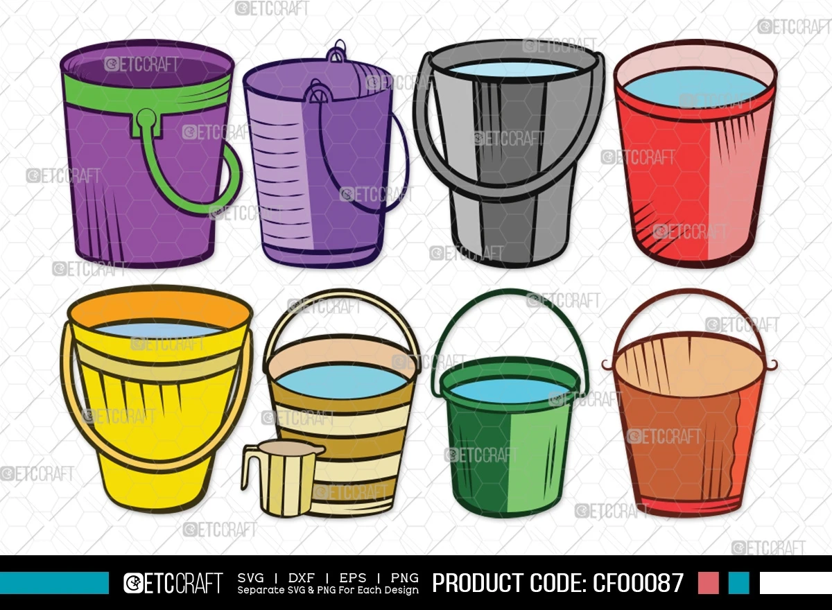 Elevate your cleaning-themed projects with our Bucket Clipart Cleaning Bucket SVG Cut File Bundle. This collection presents meticulously designed bucket clipart, ideal for infusing a touch of cleanliness into your creative endeavors.