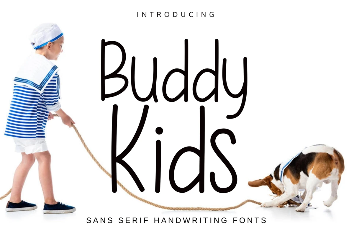 Buddy Kids is a fun lettered sans serif font that is easy to read. You can use it for various projects, such as blog posts, logos, branding, ads, invitations, greeting cards, planners, photo albums, decorations, and much more. Add it to any of your designs, and enjoy the results!