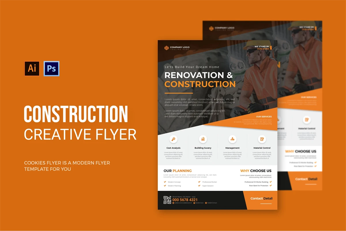 Builder Constraction - Flyer. This Flyer template is designed for your company's business needs. very clean and elegant, and also easily edited and adjusted to your liking
