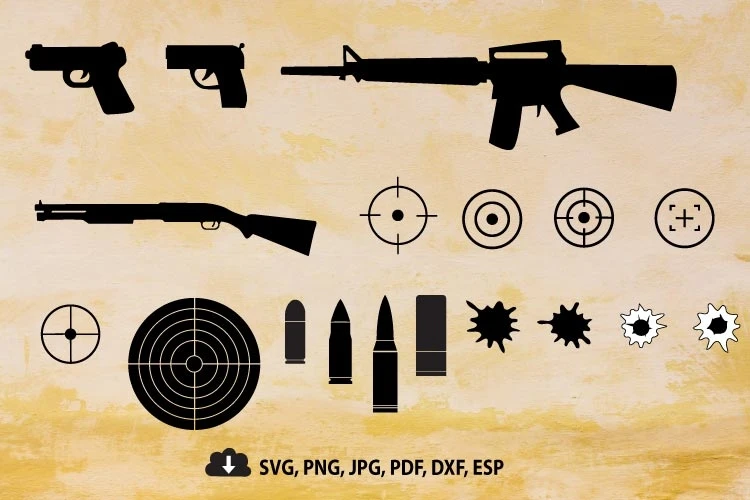 Bullet Svg, Gun Svg, Bullet Clipart, Weapon Svg, Gun Bundle, Hand Gun Svg, Ammo Svg, Military Silhouette, Bullets Bundle, Cut file, Cricut