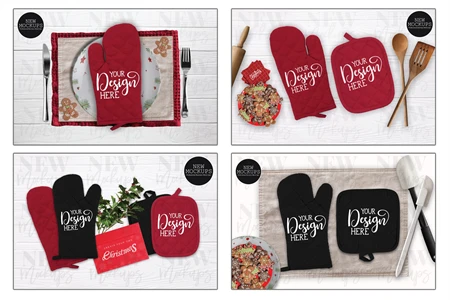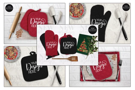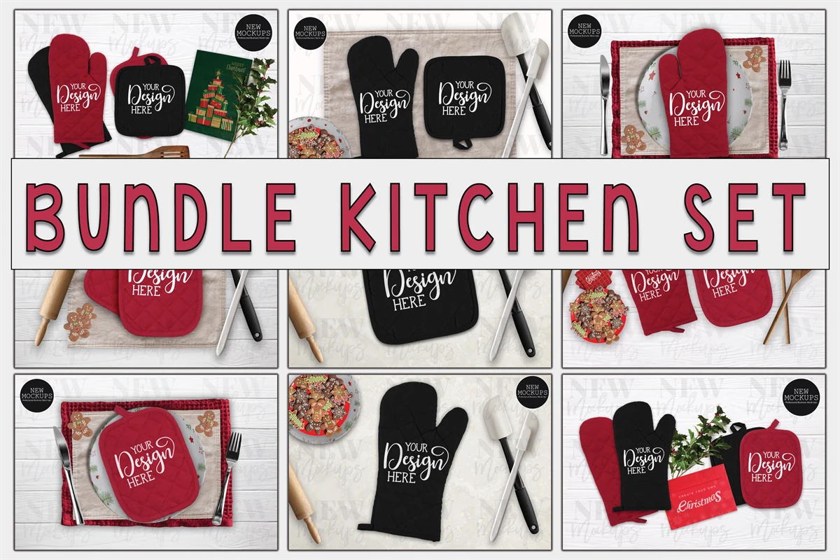 Kitchen Red & Black with Christmas accessories mockup set, Home holidays Christmas!!