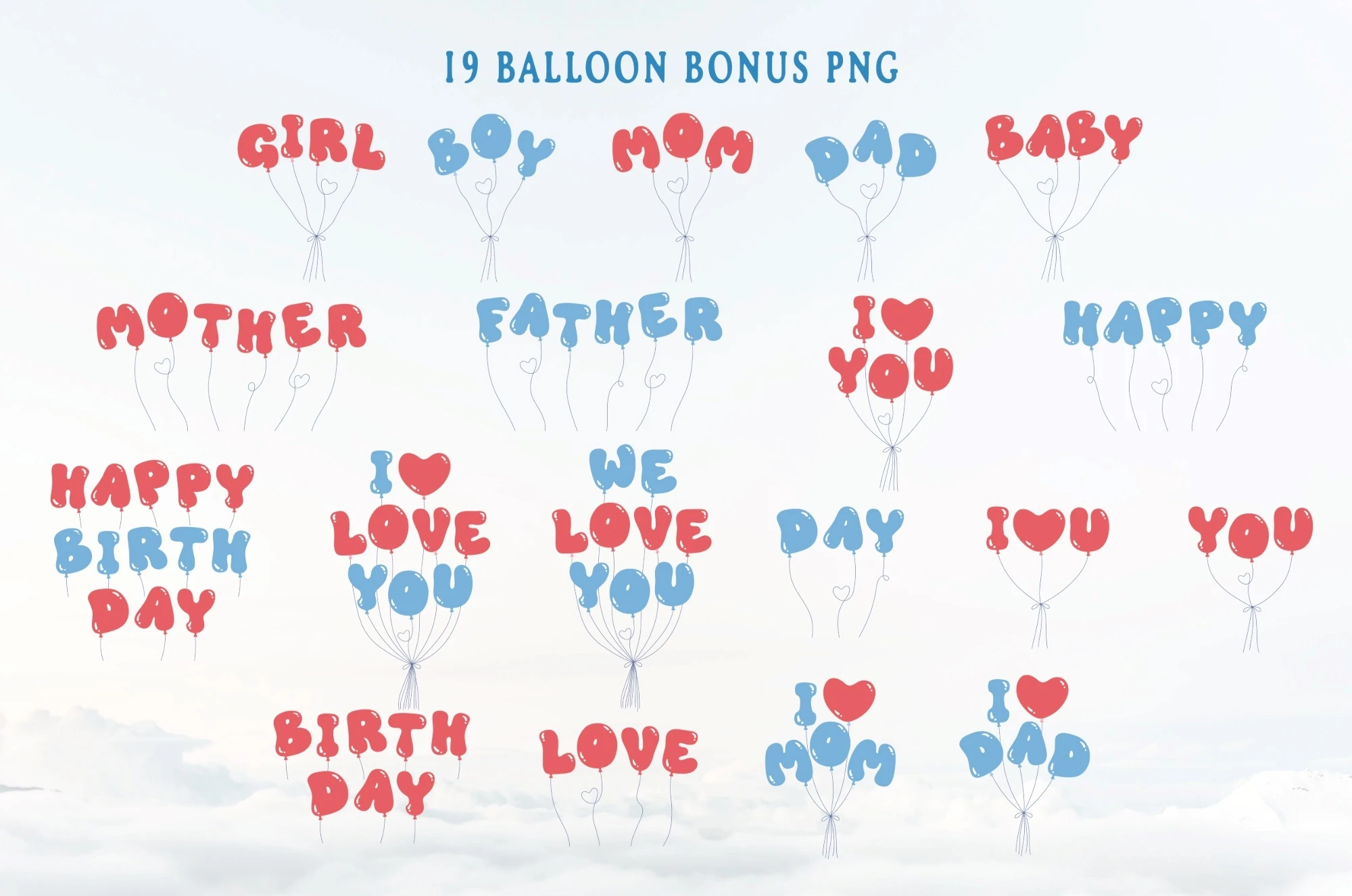 Bundle Balloon Font / 19 PNG Bonus Birthday & Valentines Day