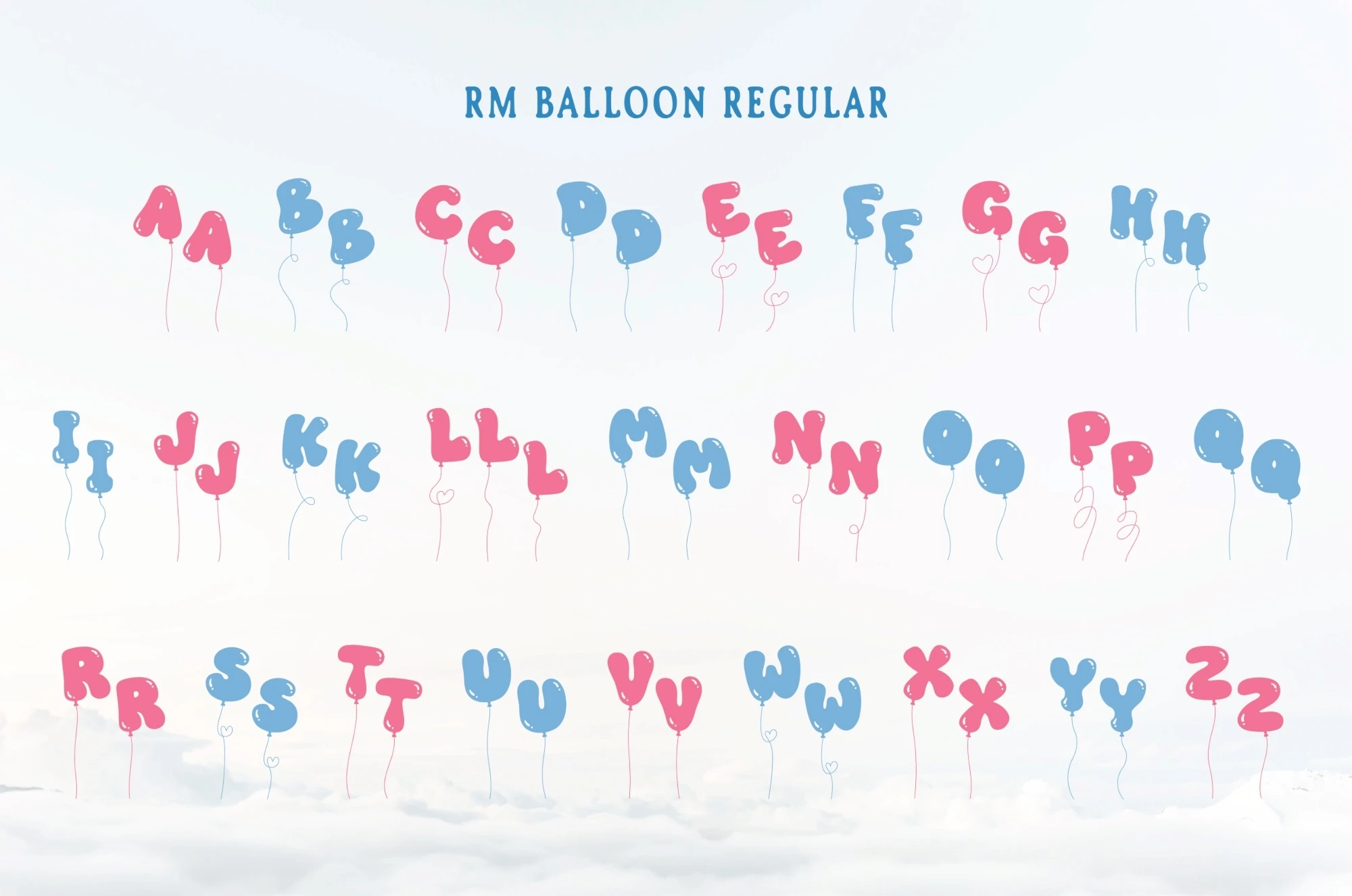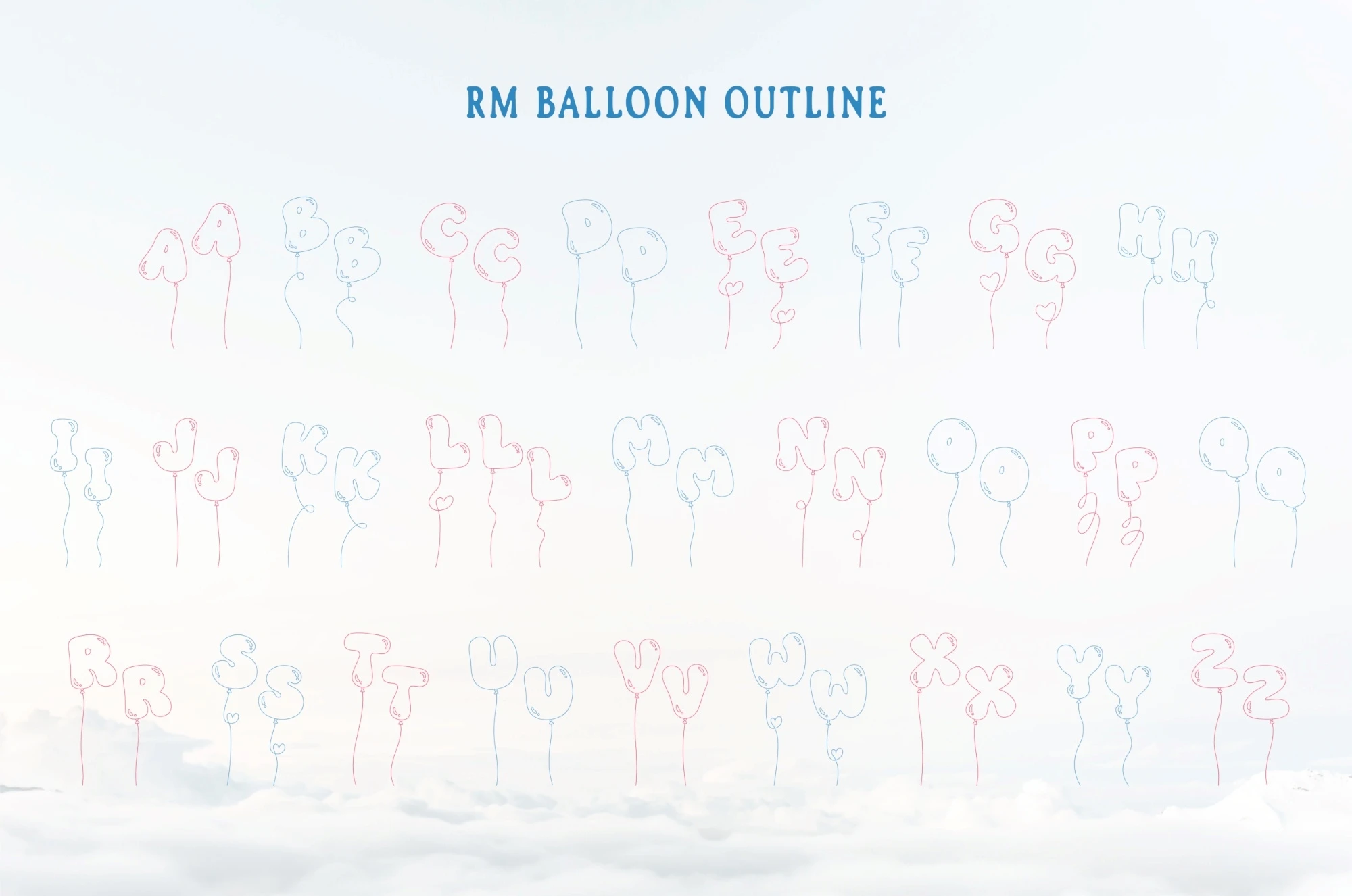 Unleash your creativity with the Balloon Font, a delightful combination of outlined and filled lettering accompanied by an impressive selection of 19 bonus png files. Expertly crafted with an adorable, light-hearted appeal, its ideal for infusing a touch of whimsy into any kid-inspired or cute projects. Employ this versatile font to enhance your t-shirt designs, give a playful twist to your mugs, add a charming touch to your books, or make your school projects come alive in a fun and delightful way.