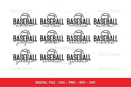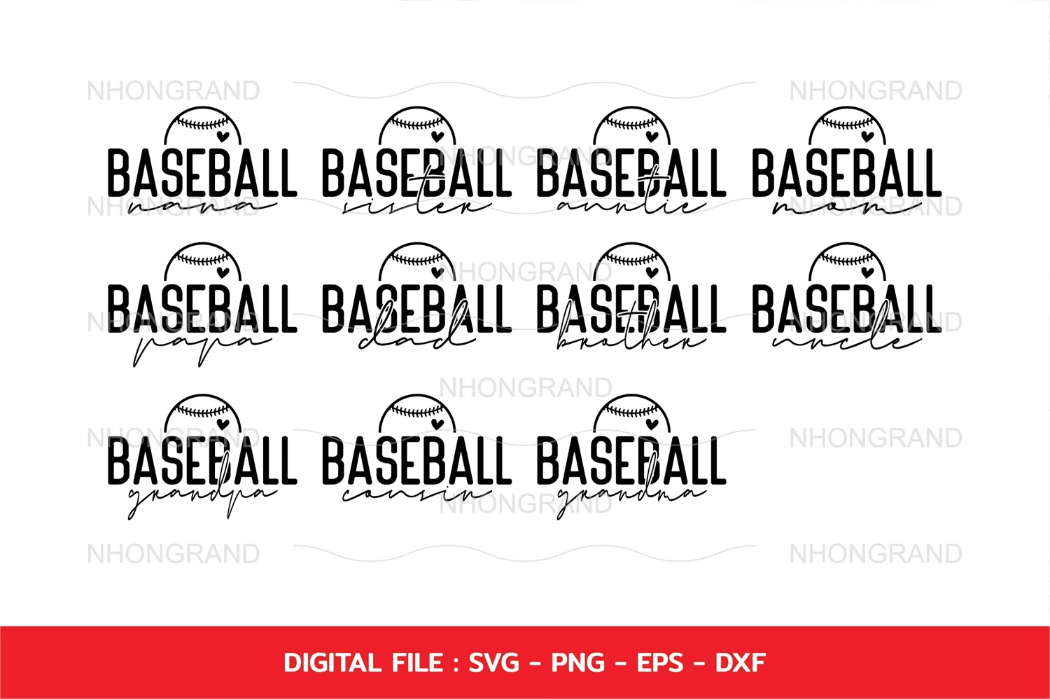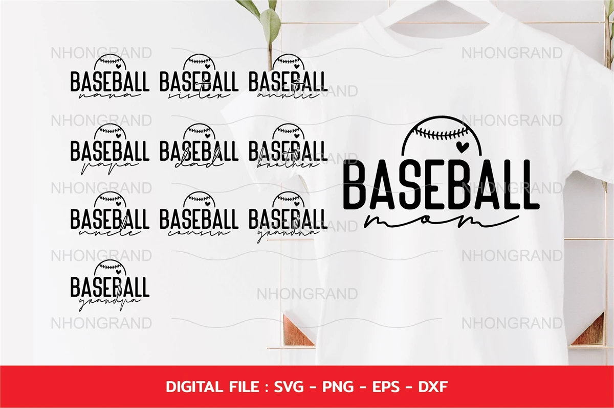 bundles family baseball cute with heart mom papa auntie, love sport, lover gift t-shirt, Cricut Files, svg, png, eps, dxf, Instant Download