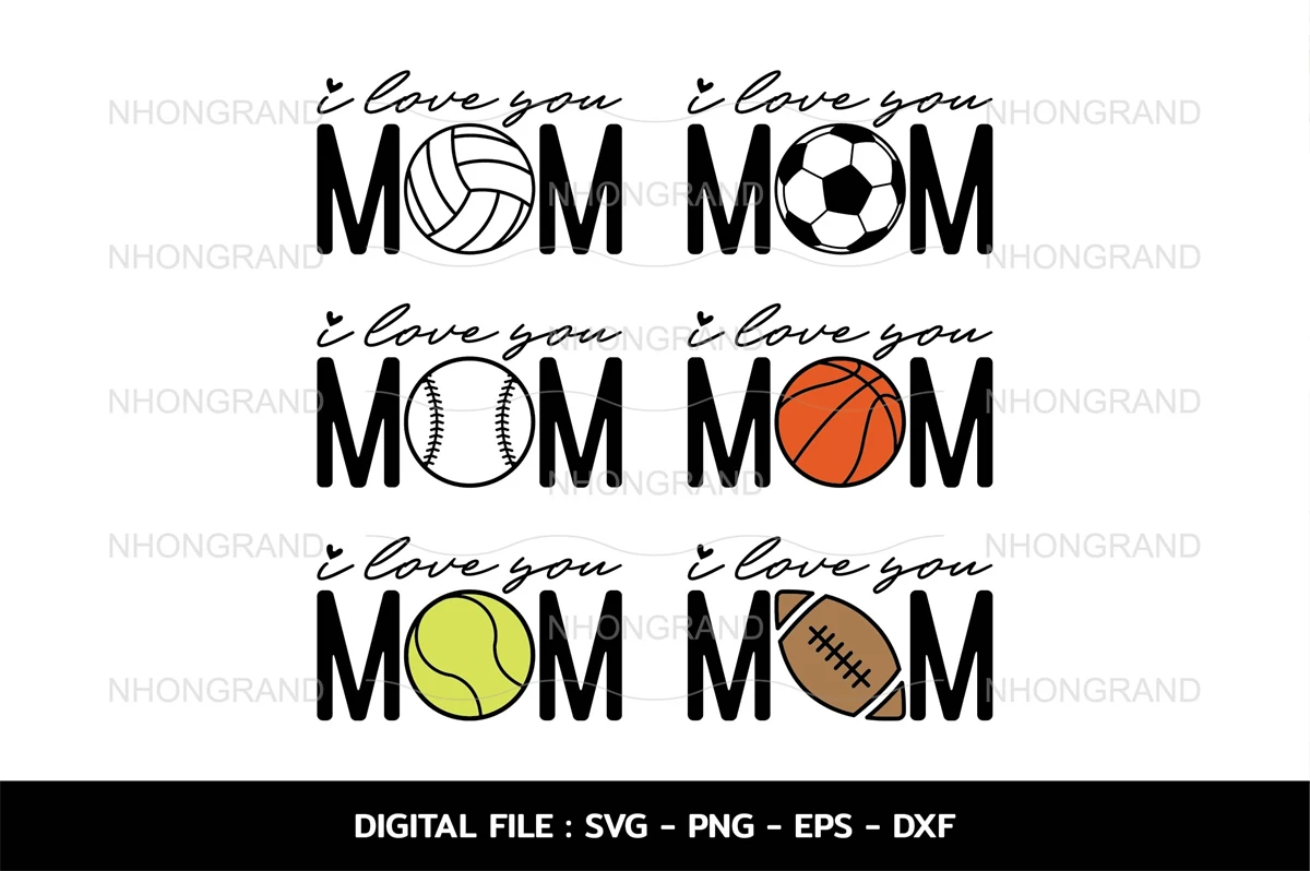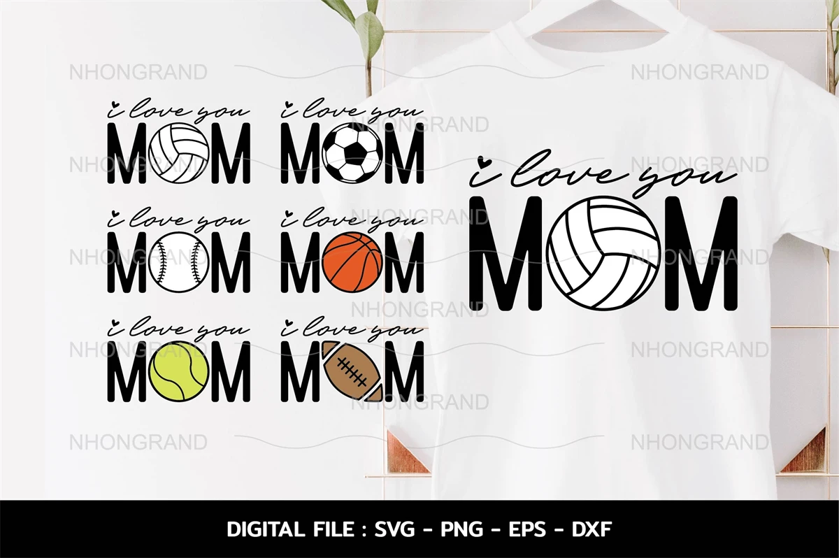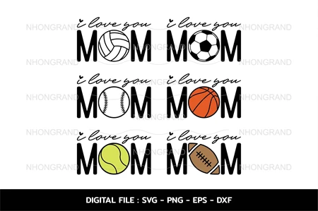 bundle i love you mom for mother's day sport soccer, baseball, basketball, tennis, football, volleyball shirt, Cricut, svg, png, eps, dxf