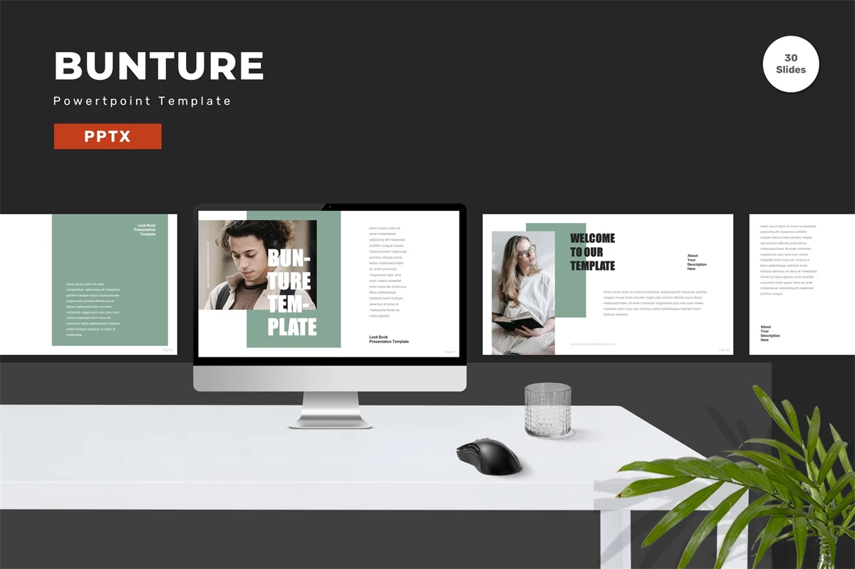 Get it now! **Bunture - Powerpoint Template** for All Business and Personal Needs All elements on this template are editable; input your content, replace your image with a placeholder, change the color, and all presentations include an animated slide to present your slides.