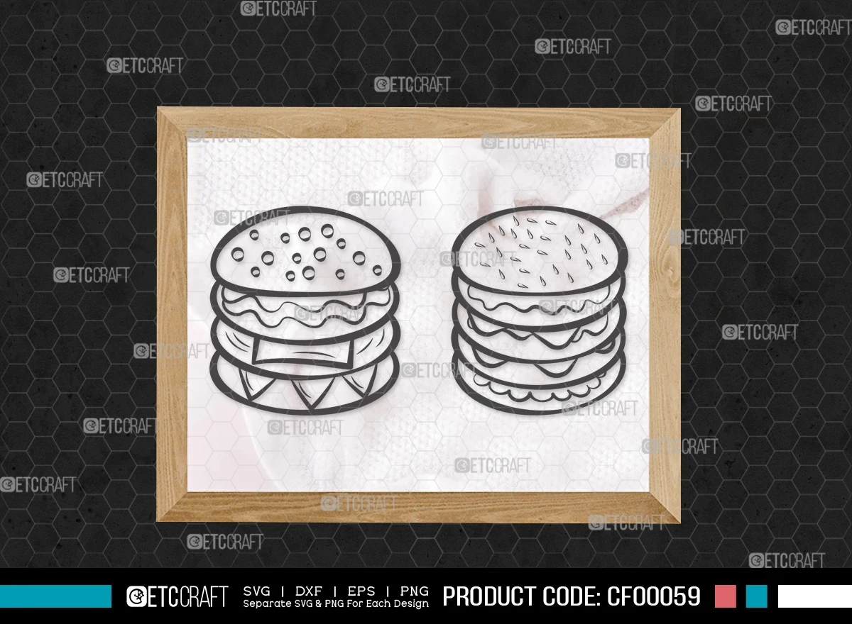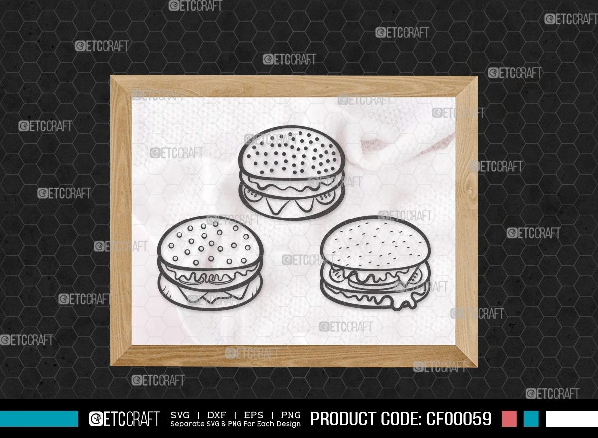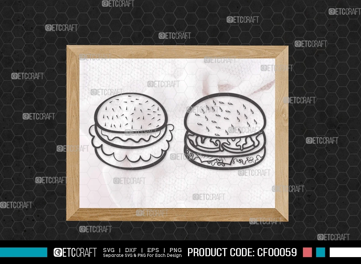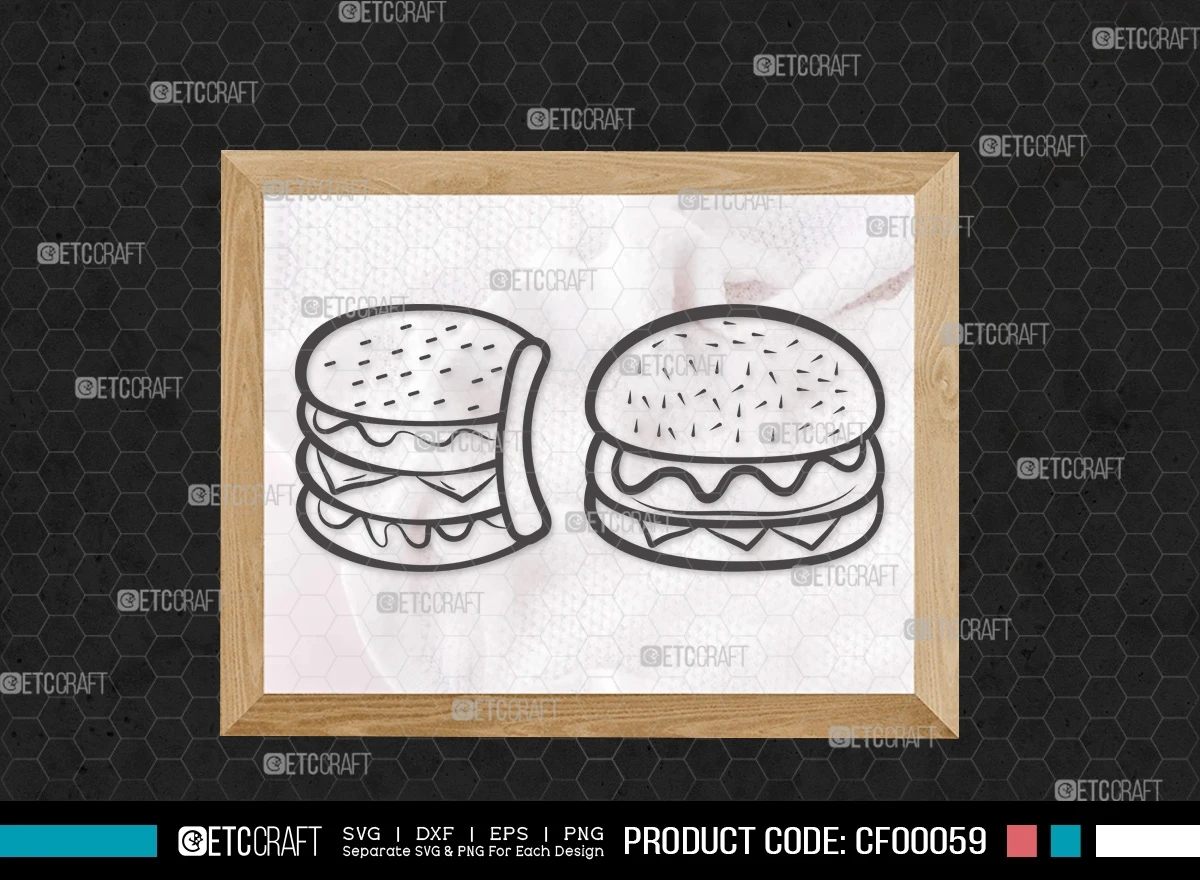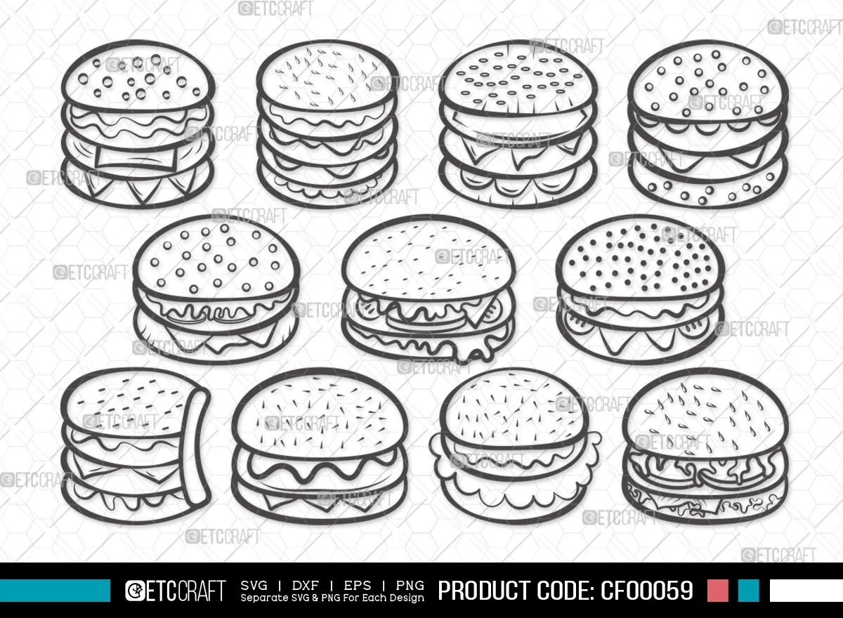 Embrace your inner foodie and craft a feast for the eyes with our "Burger Outline Ham & Cheese BBQ Fast Food" SVG cut file bundle. This collection of burger-themed designs offers a flavorful blend of creativity and style for all your culinary-inspired projects.