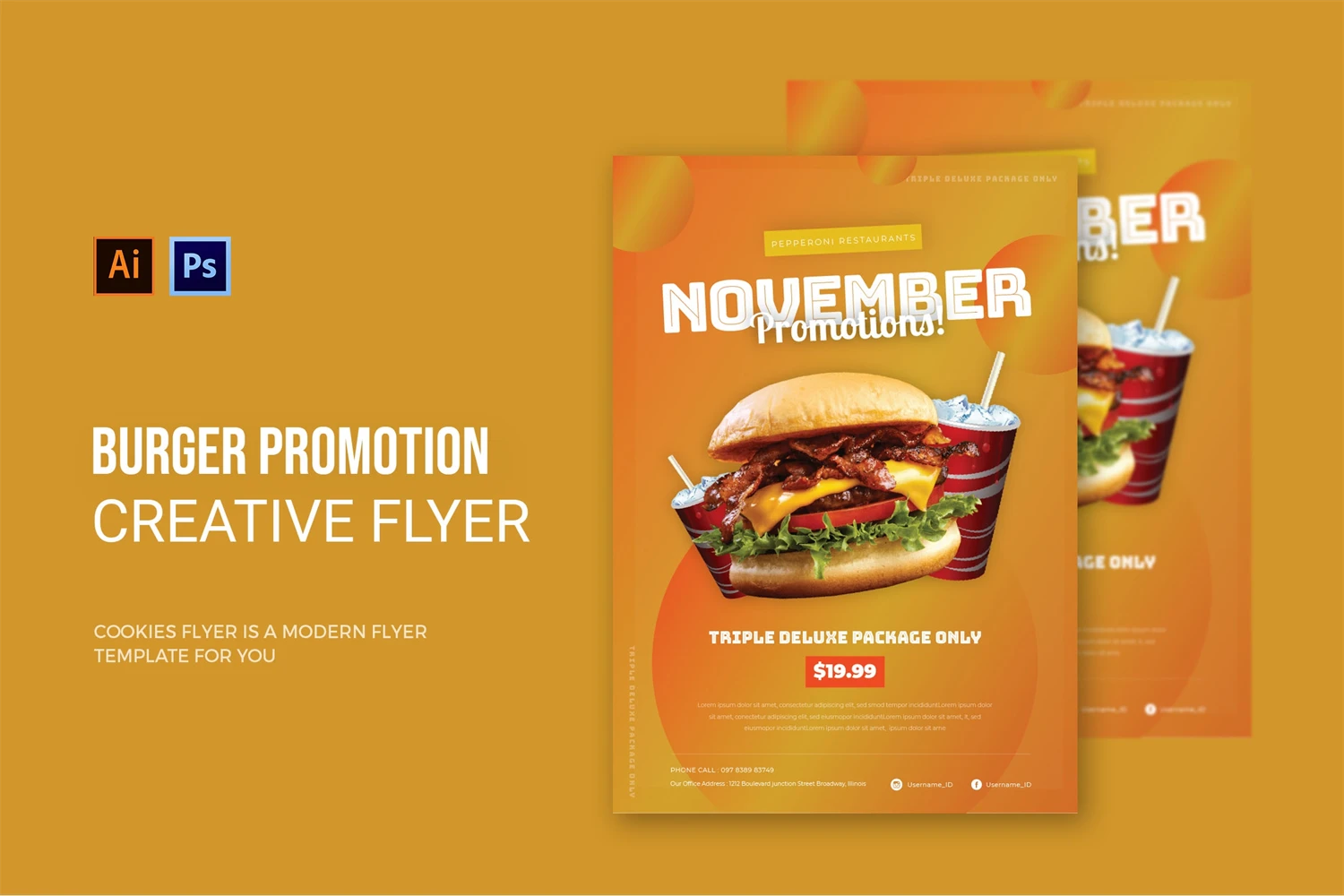 Burger Promotion - Flyer. This Flyer template is designed for your company's business needs. very clean and elegant, and also easily edited and adjusted to your liking