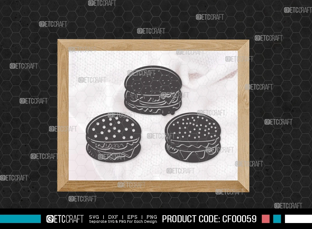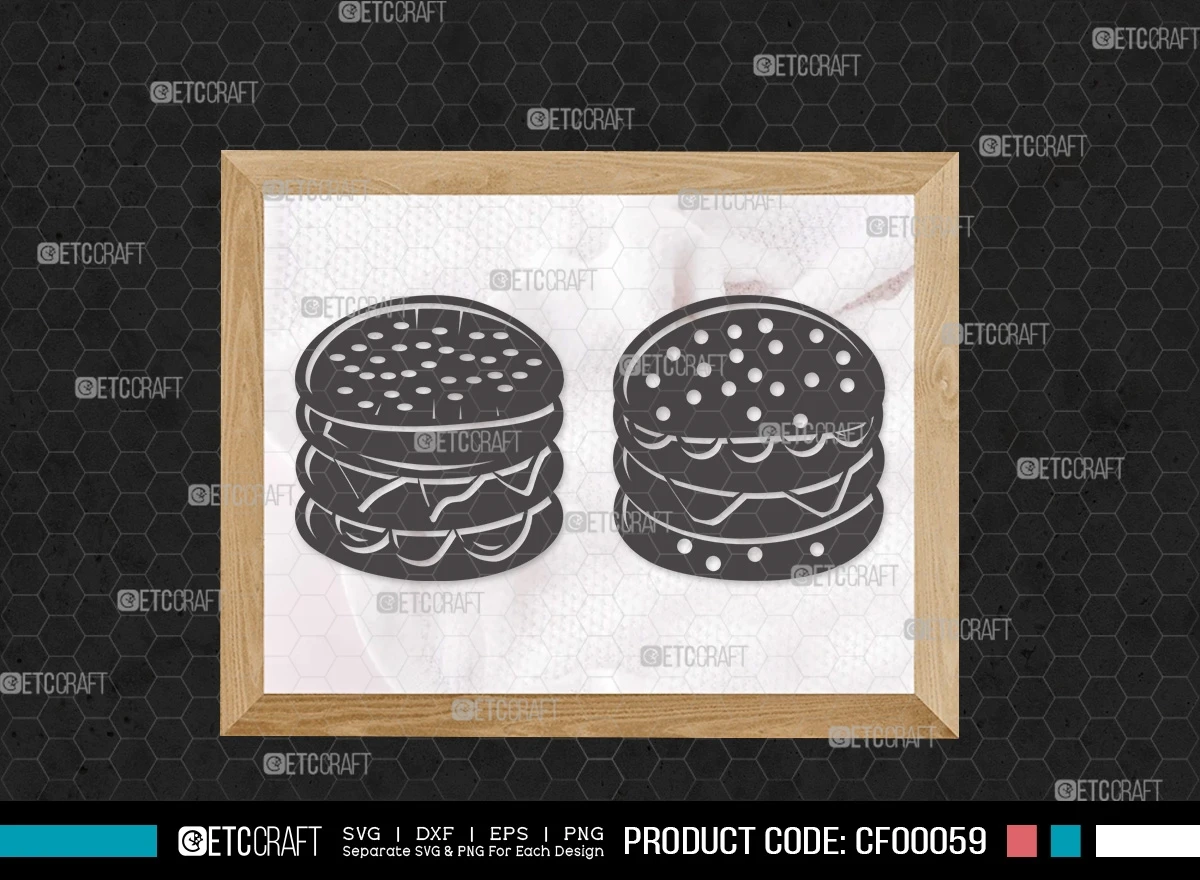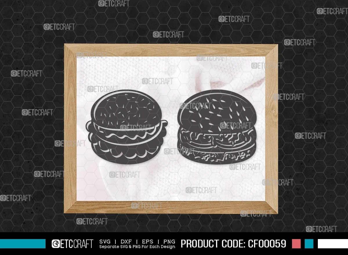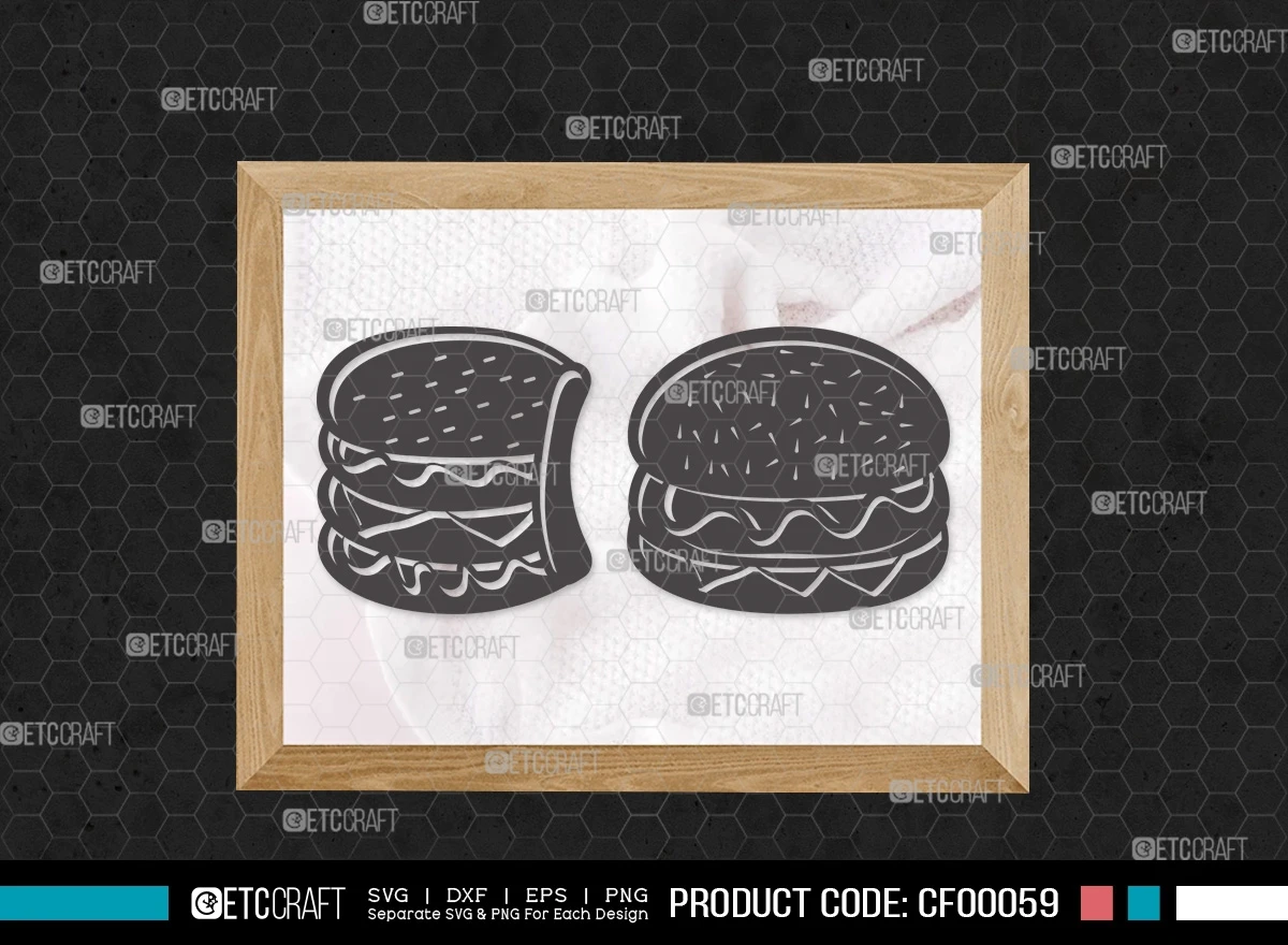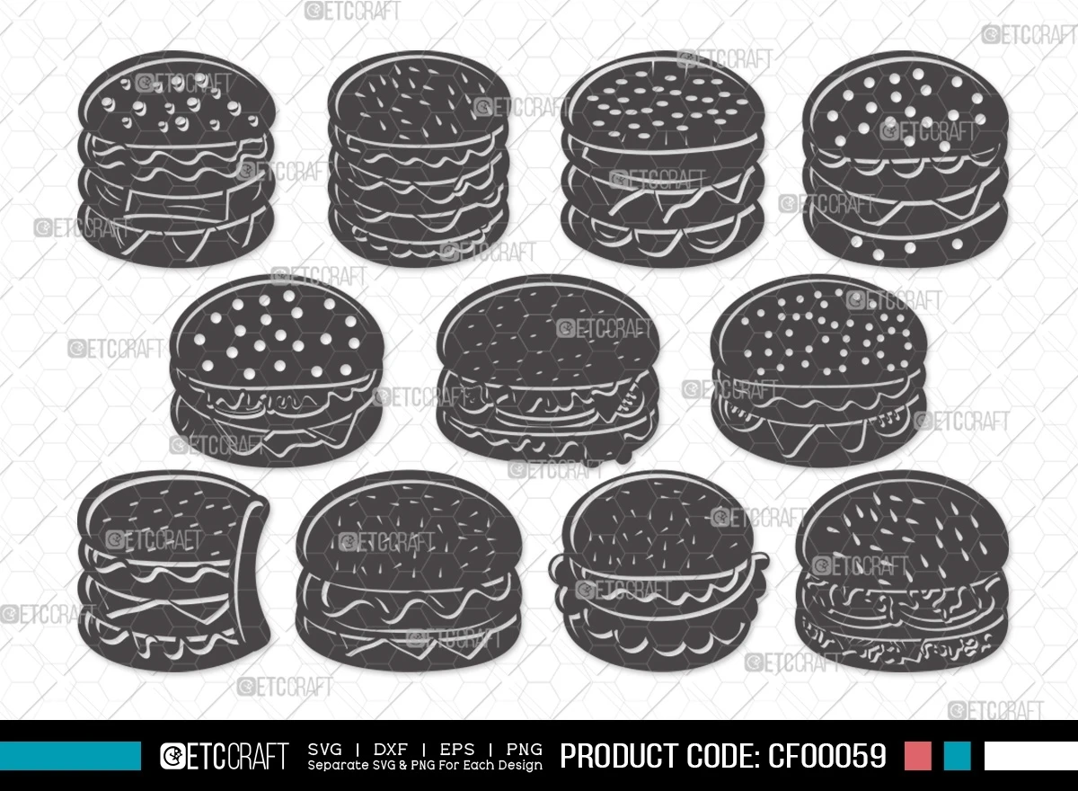 Satisfy your creative hunger with our "Burger Silhouette Ham & Cheese BBQ Fast Food" SVG cut file bundle. This collection of versatile burger-themed designs offers a delightful blend of style and simplicity for all your crafting adventures.