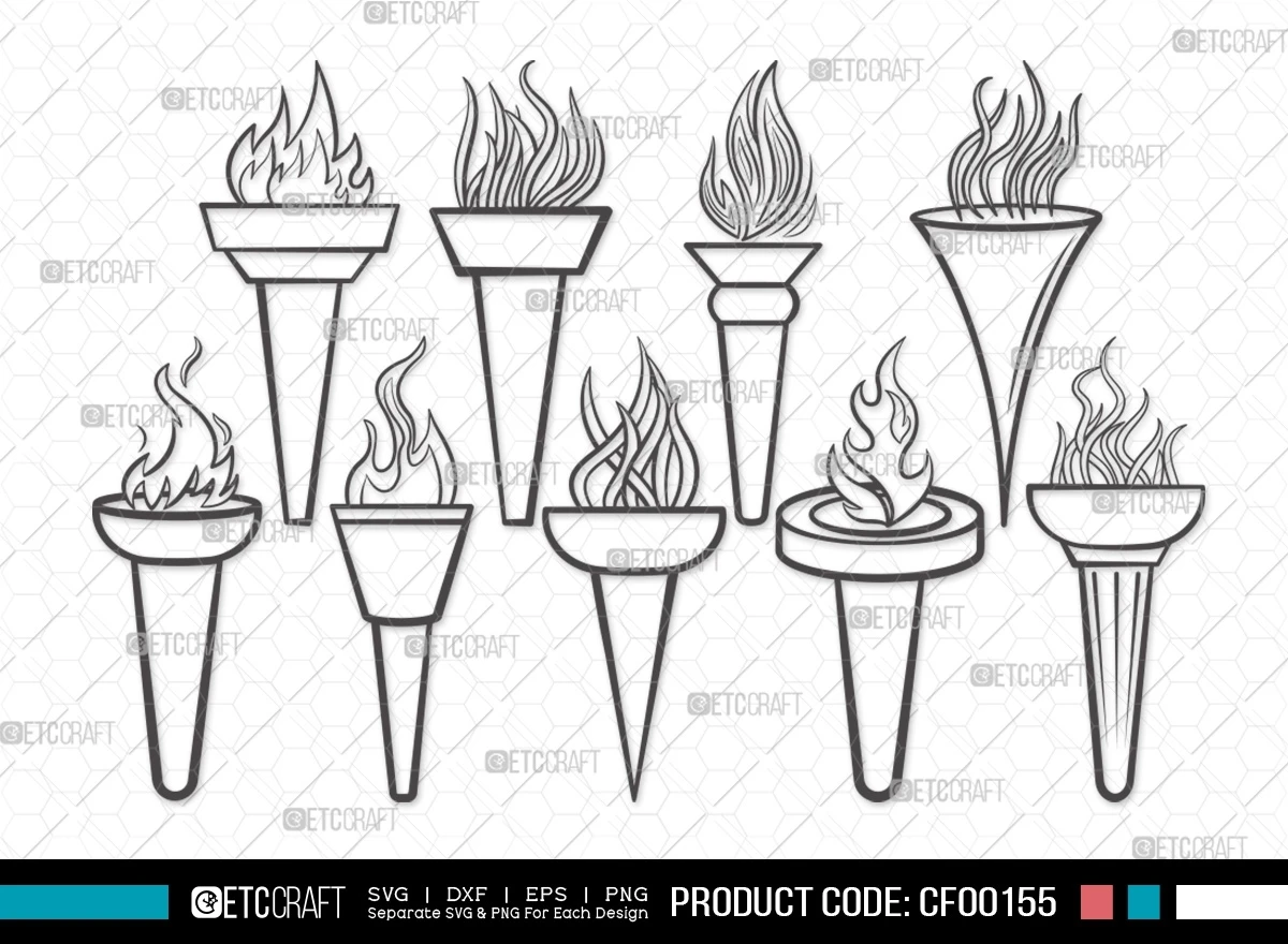Illuminate your projects with our Burning Torch Outline Fire Flame Light SVG Cut File Bundle. Infuse your creations with the fiery essence of torches, meticulously designed in outline form. This bundle is a perfect fit for crafters, event organizers, and creators seeking to add a touch of fire and light to their designs.