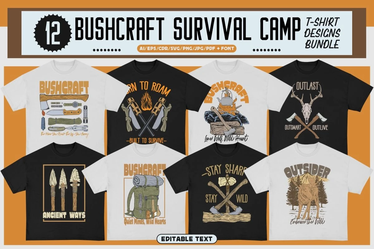 Bushcraft Survival Camp T-shirt Designs Bundle