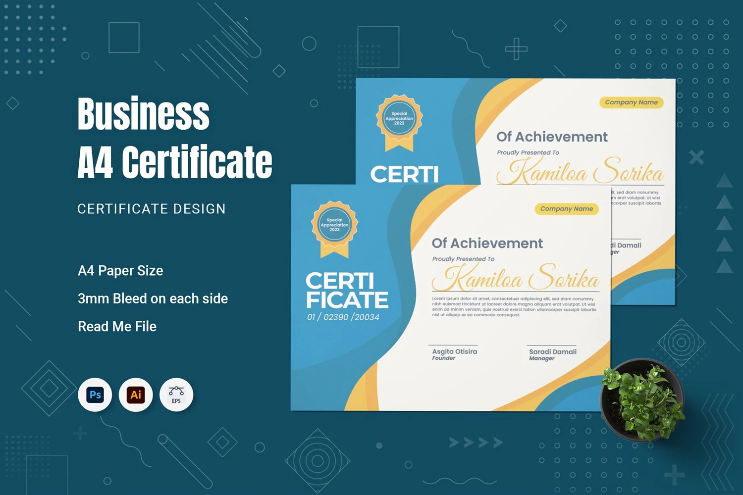 This certificate template can be used for a variety of different purposes in the realms of business, education, fashion, photography, food, lifestyle, architecture, and so on. You dont need to create them from scratch; it's time-consuming. It is completely customizable to suit your brand's colors and corporate fonts.