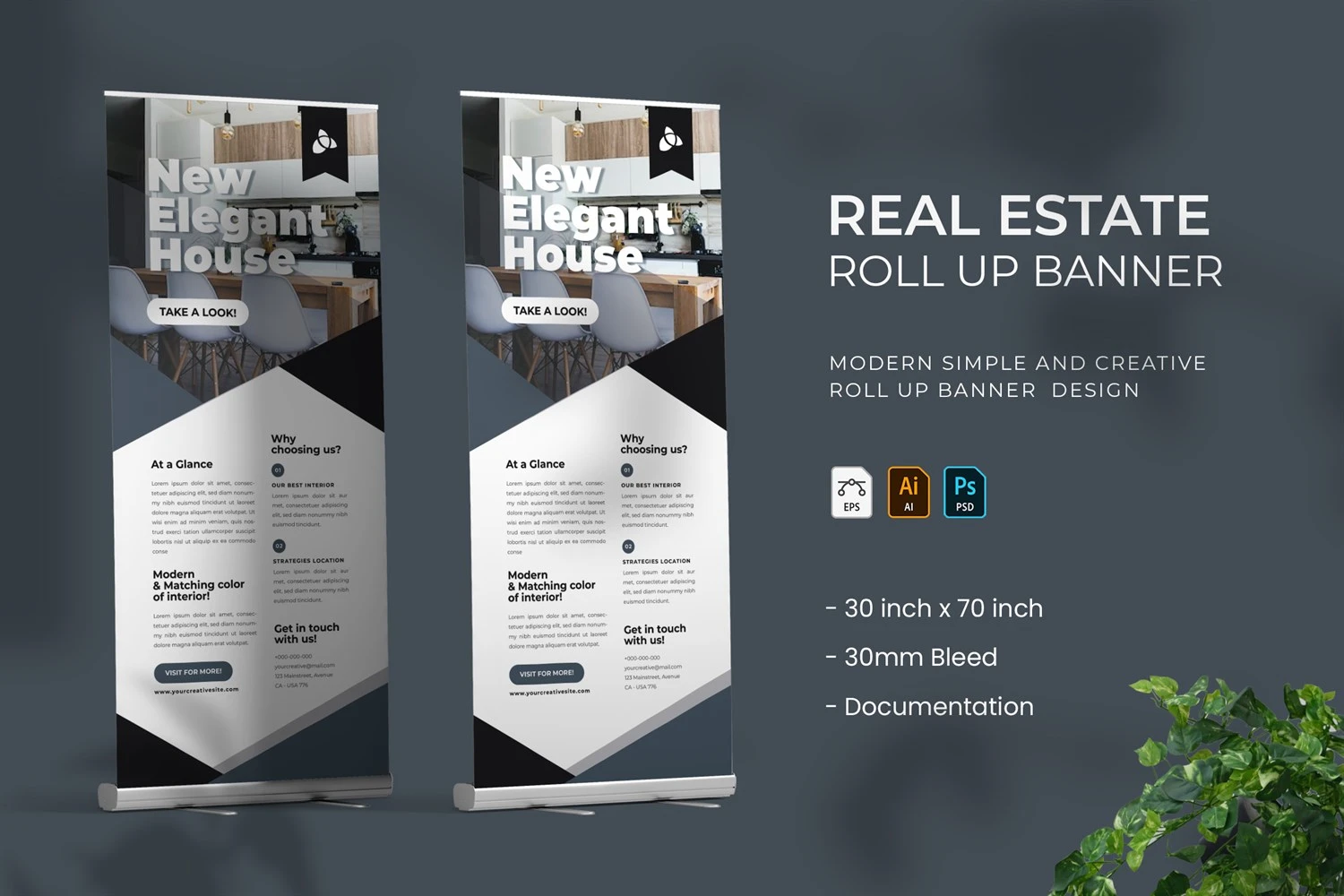Roll-Up Banner Template: This is the best way to sell more furniture if you are selling it. With this beautiful roll-up banner, you can beat out your competitors and make your sales area look better. When you want to make an impression, its very important that your banner stand has the right design and information. Bring your project to the next level and see what can be done.