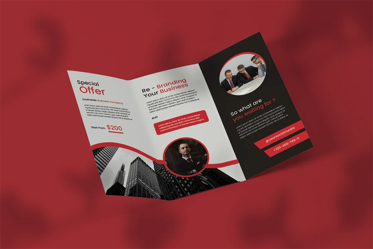 This corporate business brochure template is a trifold brochure, and it is stylish, sophisticated, and professional. This brochure is appropriate for any business or corporate publication and can also be used for publications such as annual reports and company profiles. easily editable for easy understanding. Just drop in your own images and texts, and its ready.