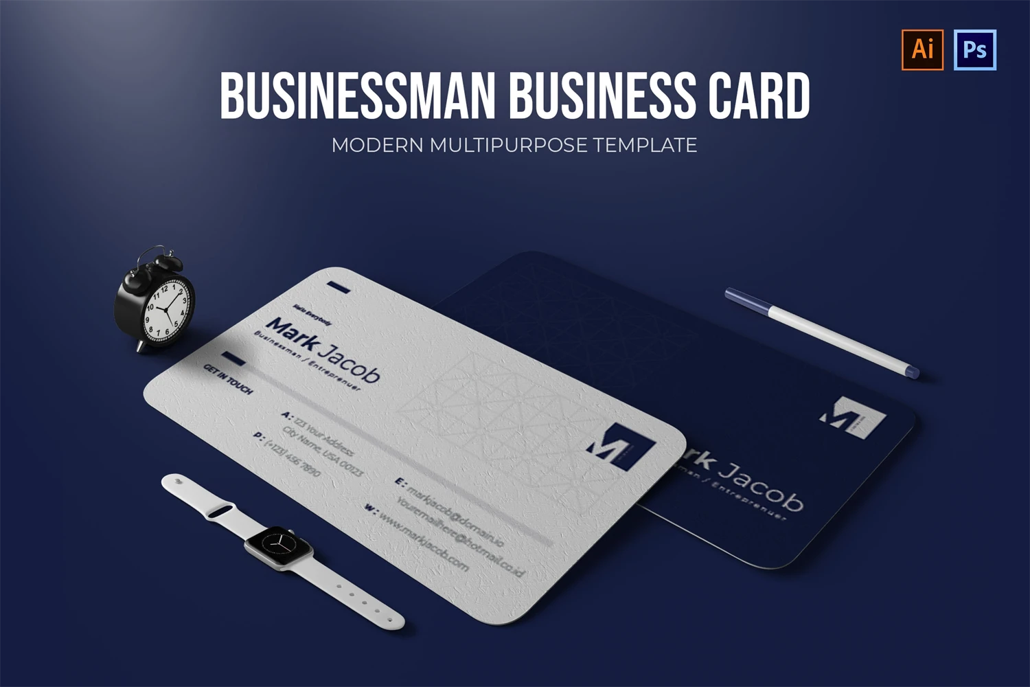 This Businessman - Business Card make your business cards look professional. You can use this business card for, identity, company business cards, Corporate Business, Creative, Blogs, Photographers, Artists, Designers, etc.