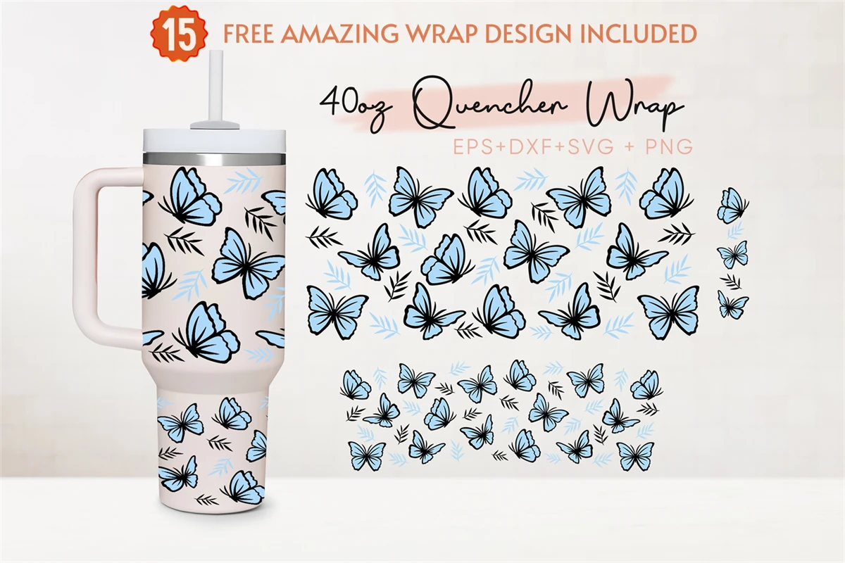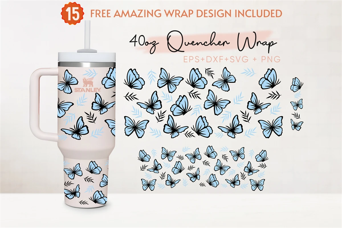 Butterfly 40oz Quencher Tumbler, Butterflies Print, 40oz Svg